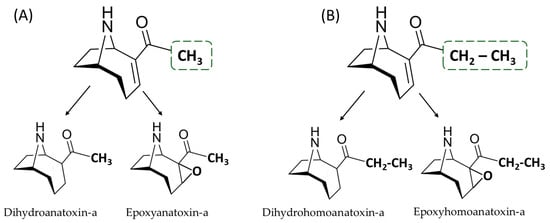 - Spivak, C.E.; Witkop, B.; Albuquerque, E.X. Anatoxin-a: A novel, potent agonist at the nicotinic receptor. Mol. Pharmacol. 1980, 18, 384–394. [Google Scholar]