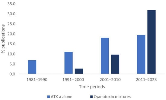 - Plata-Calzado, C.; Prieto, A.I.; Cameán, A.M.; Jos, A. Toxic effects produced by anatoxin-a under laboratoty conditions: A review. Toxins 2022, 14, 861. [Google Scholar] [CrossRef]