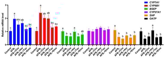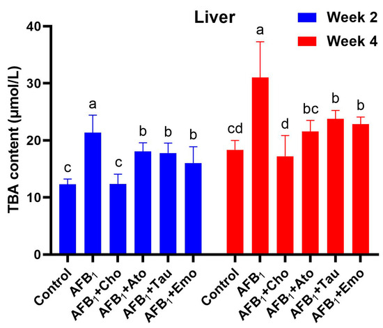 | Items 2 | Control | AFB1 | AFB1 + Cho | AFB1 + Ato | AFB1 + Tau | AFB1 + Emo |