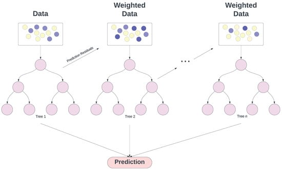 85]. Additionally, their sequential boosting process is computationally intensive and time-consuming compared with methods like random forests that build trees in parallel. This complexity can be a significant drawback in scenarios where computational resources or time are limited. Some of the main hyperparameters associated with GB are as follows: (i) Number of weak learners: this defines the number of boosting stages or learners to be created. More learners can lead to a more powerful model, but also increase the risk of overfitting and raise computational cost. (ii) Learning rate: this parameter scales the contribution of each learner. A smaller learning rate requires more weak learners but can yield a more generalised model. In the case of the weak learner being trees, (iii) the maximum depth of trees determines the maximum depth of each individual tree. Deeper trees can model more complex patterns but can also lead to overfitting. An extension of a GBM model is called eXtreme Gradient Boosting (XGB) [