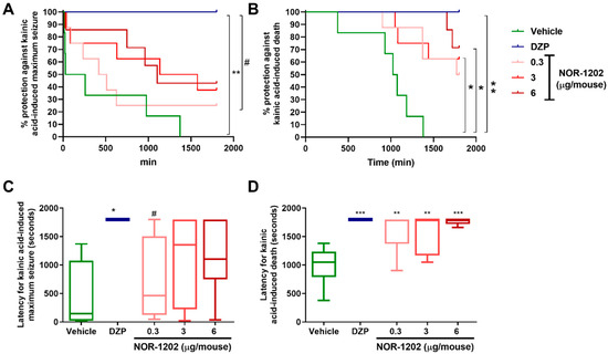 2.1. NOR-1202 Prevented Death in KA-Induced Acute Model