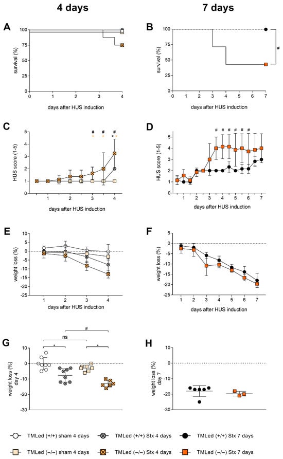 2.1. Rate of HUS Progression Is Increased in TMLed (−/−) Stx Mice