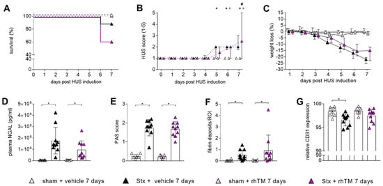 3.2. Therapeutic Intervention with RhTM Does Not Alter Disease Progression in Experimental HUS