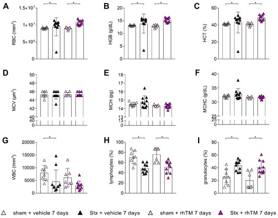 2.5. Hematologic Parameters Are Not Significantly Affected by Administration of RhTM in Wild-Type Mice with HUS