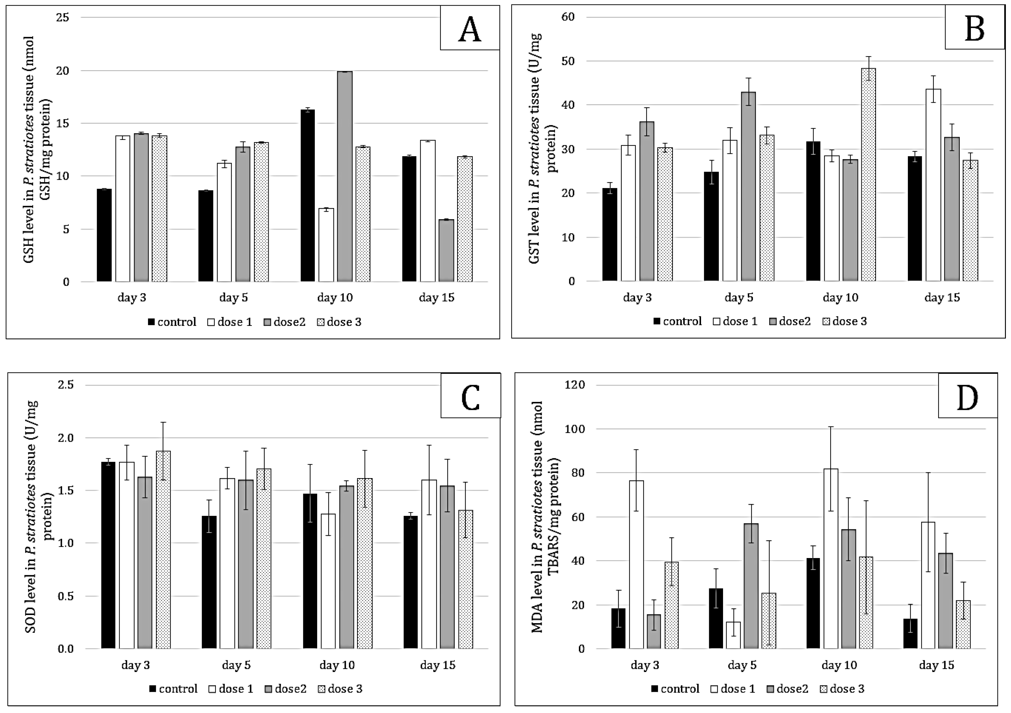 - Romero-Oliva, C.S.; Munoz, R.; De la Rosa, F. Antioxidant responses in macrophytes exposed to microcystins. Environ. Pollut. 2015, 204, 358–367. [Google Scholar] [CrossRef]