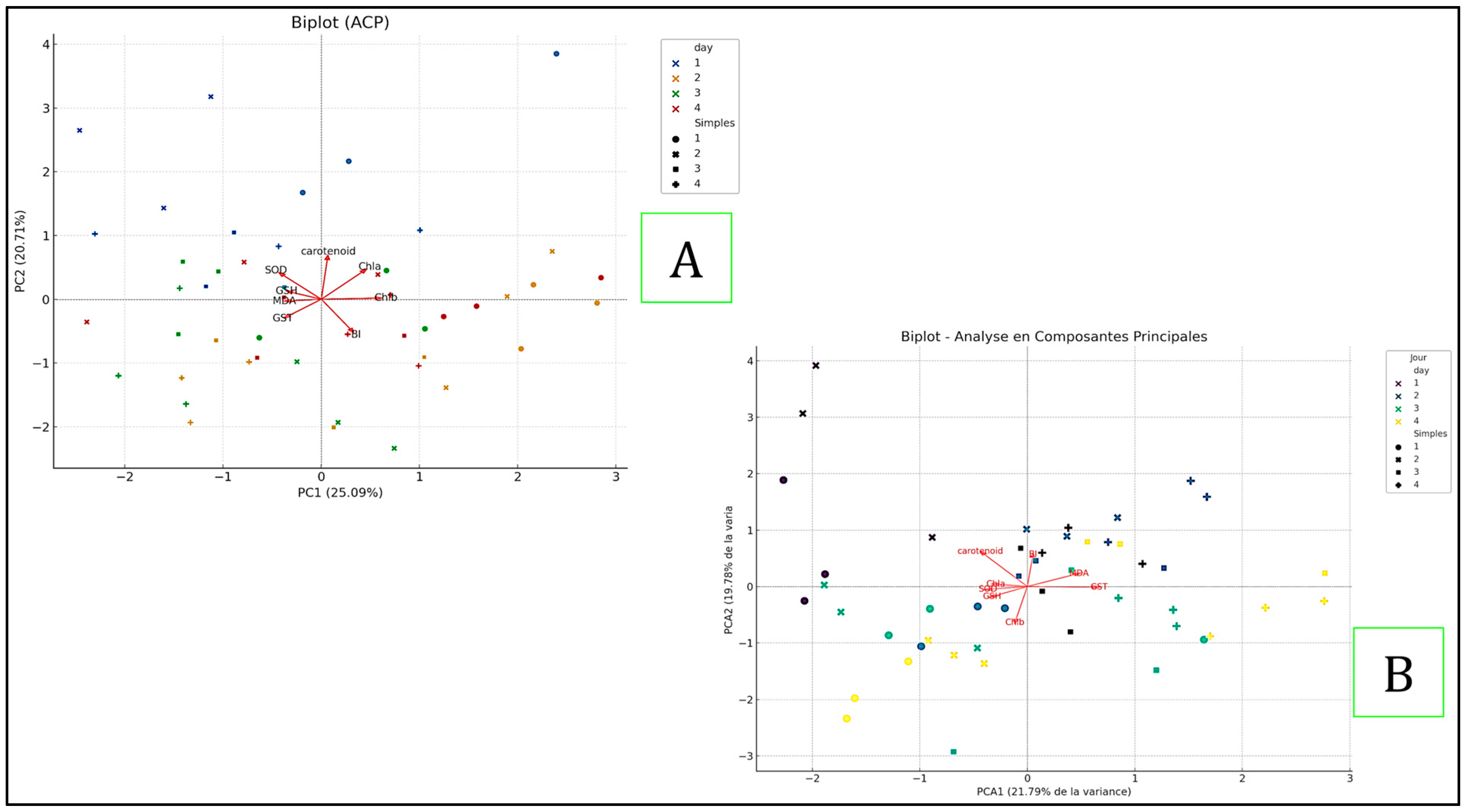 2.5. Comparison of the Principal Component Analysis (PCA)