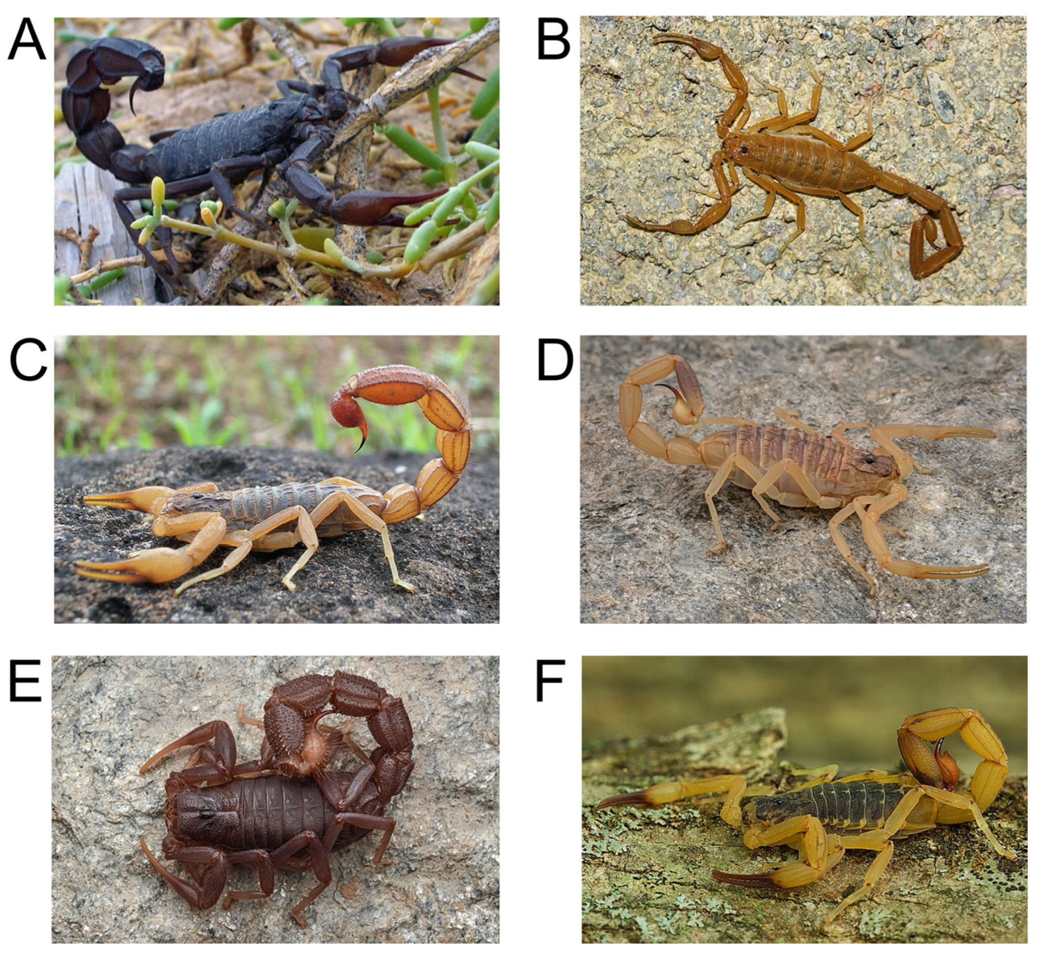 - Rein, J.O. The Scorpion Files (Version Apr 2025). In Catalogue of Life (Version 20/08/2025); Bánki, O., Roskov, Y., Döring, M., Ower, G., Hernández Robles, D.R., Plata Corredor, C.A., Stjernegaard Jeppesen, T., Örn, A., Pape, T., et al., Eds.; Catalogue of Life Foundation: Amsterdam, The Netherlands, 2025; Available online: https://www.catalogueoflife.org/data/dataset/1164 (accessed on 12 September 2025). [CrossRef]