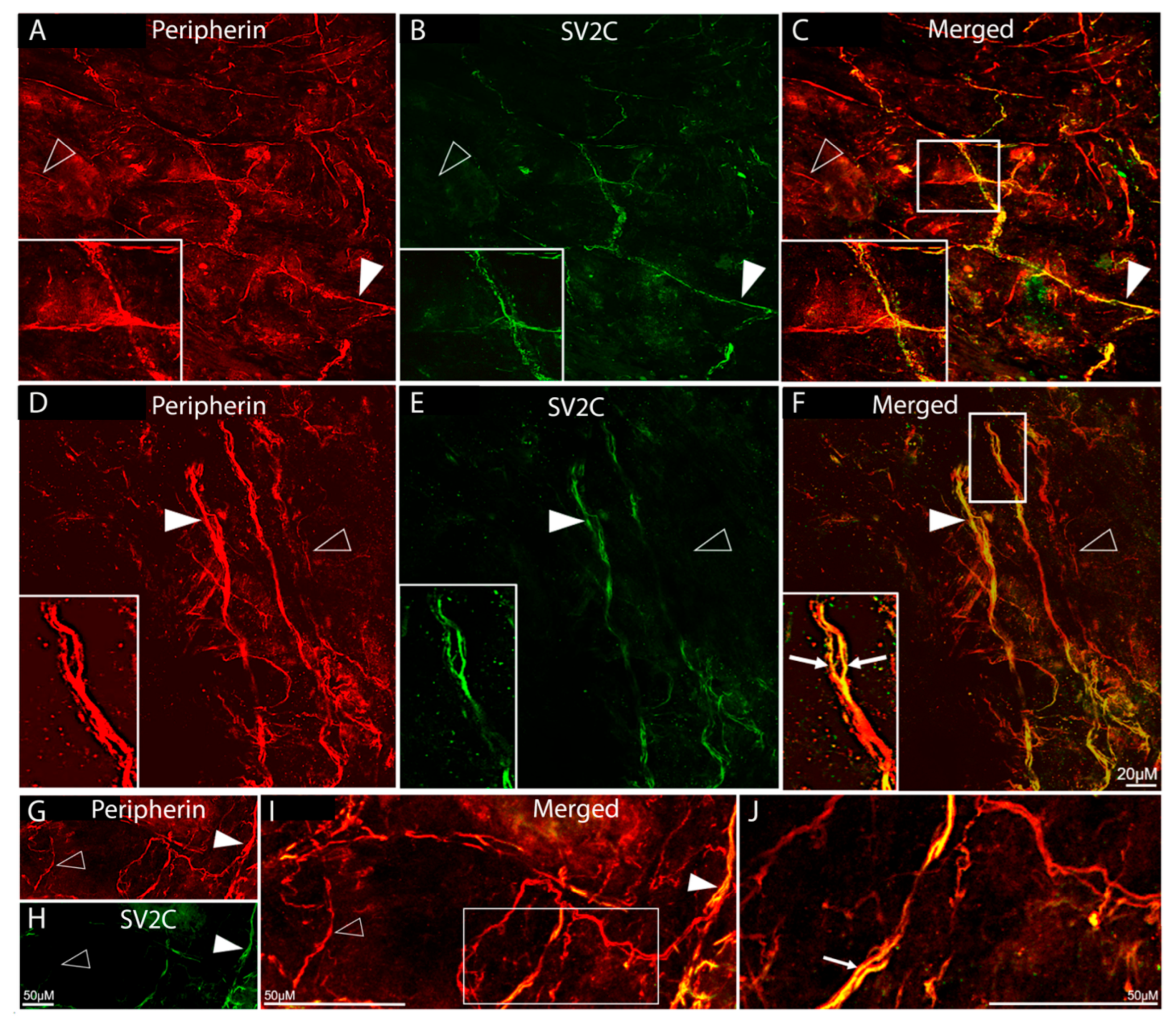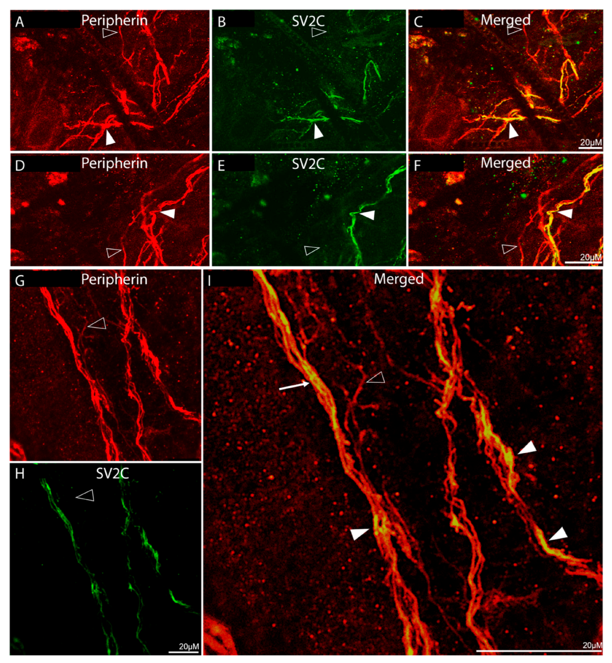 - Distribution of SV2C/peripherin-LIR fibers (Figure 2):
