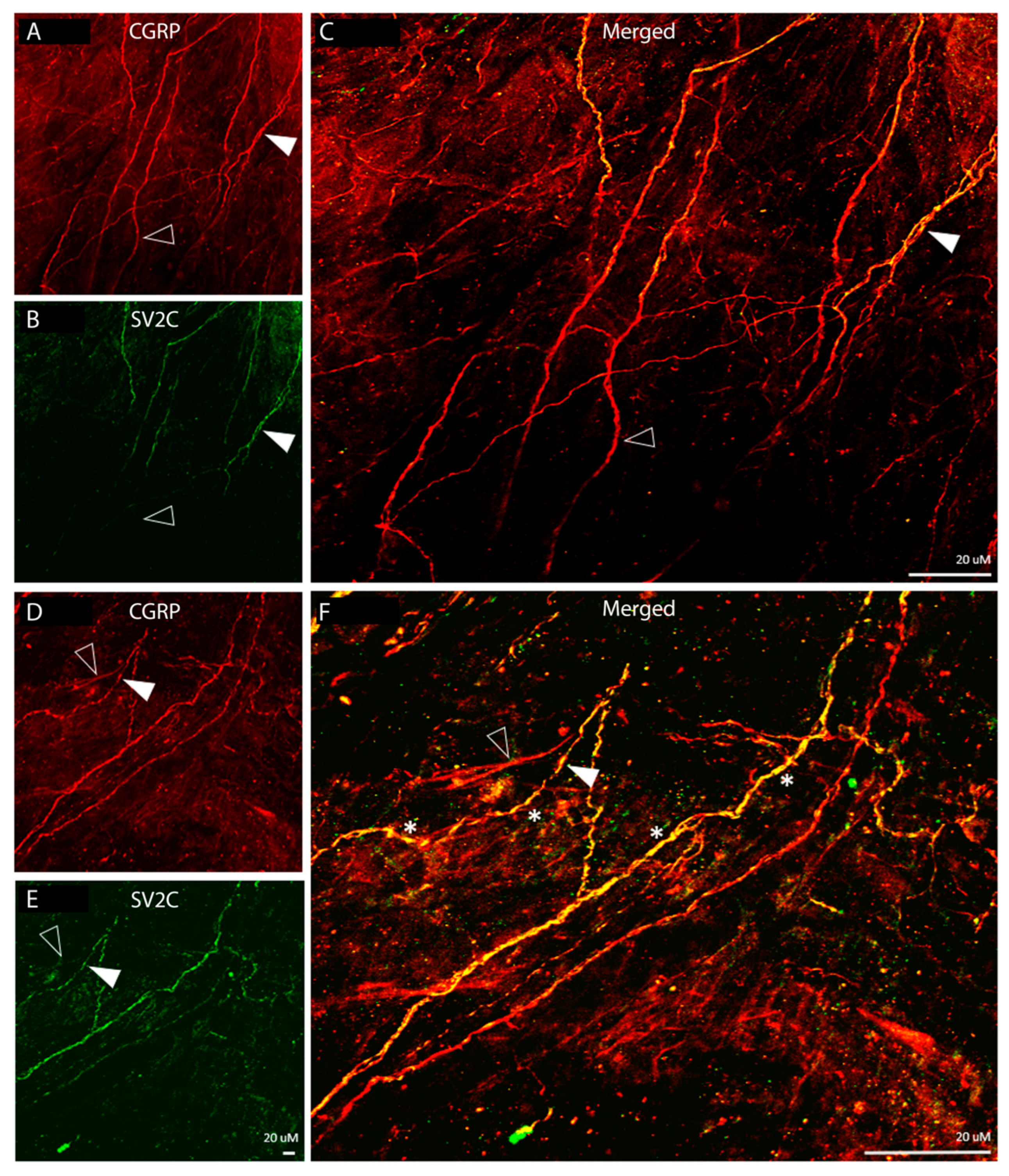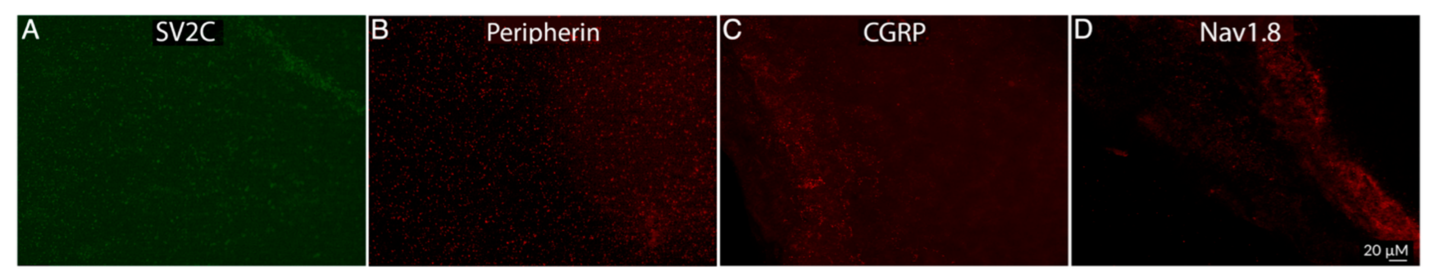 - Distribution of SV2C/CGRP LIR fibers (Figure 3):