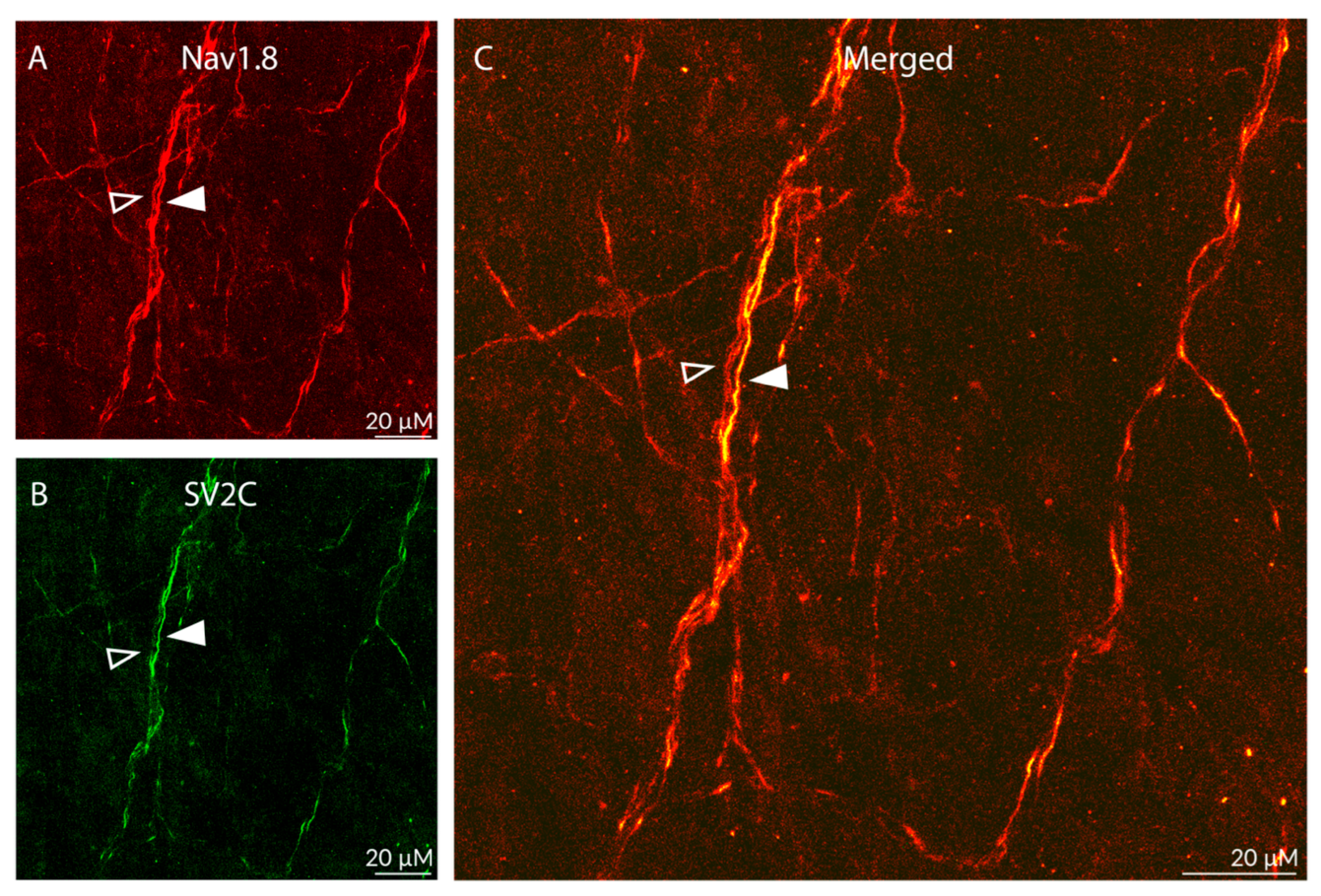 - Distribution of SV2C/NaV1.8 LIR fibers (Figure 4):