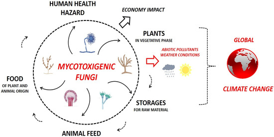 - Perrone, G.; Ferrara, M.; Medina, A.; Pascale, M.; Magan, N. Toxigenic fungi and mycotoxins in a climate change scenario: Ecology, genomics, distribution, prediction and prevention of the risk. Microorganisms 2020, 8, 1496. [Google Scholar] [CrossRef]
