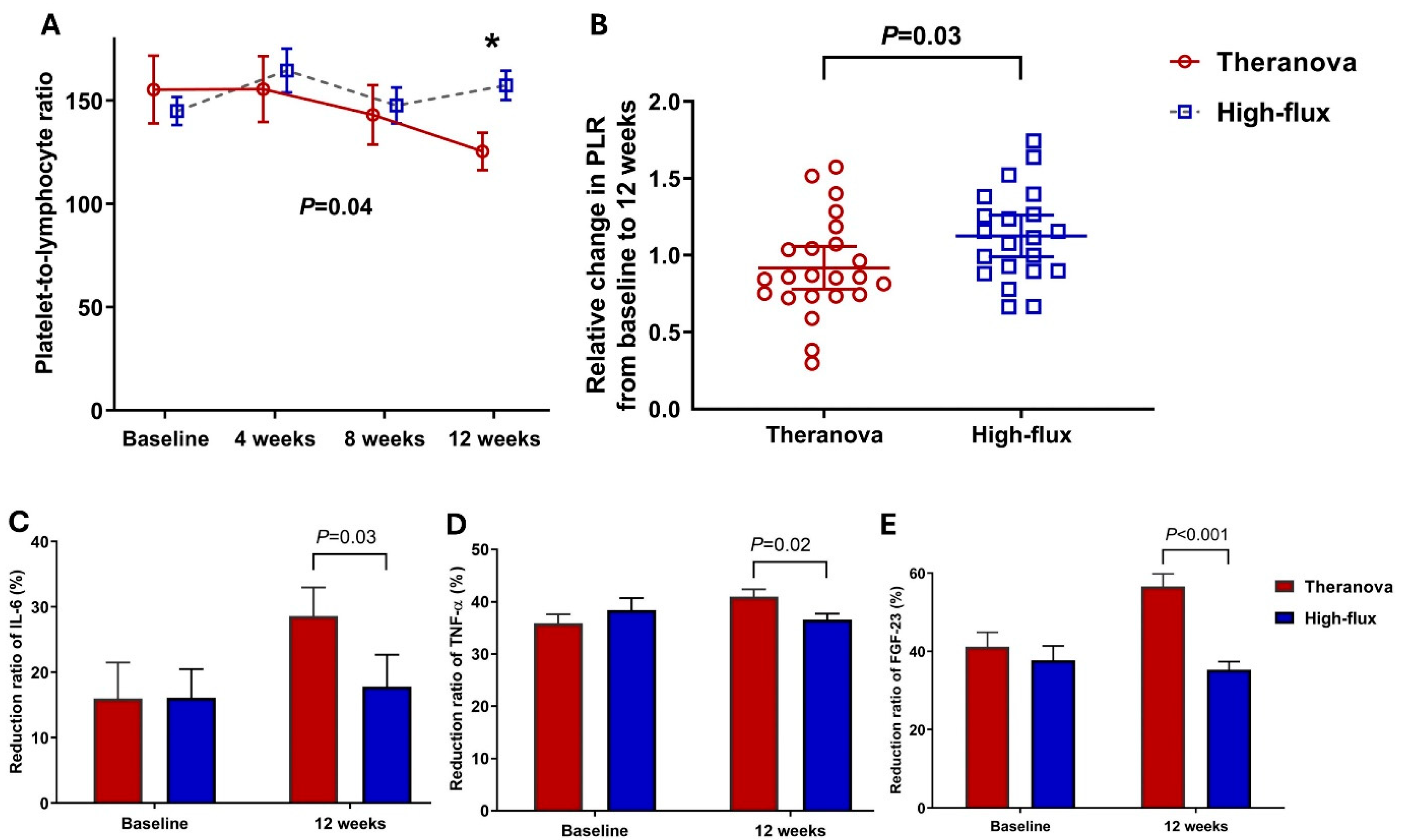 Effect of Expanded Hemodialysis with the Theranova Dialyzer on the Platelet-to-Lymphocyte Ratio and Inflammatory Markers