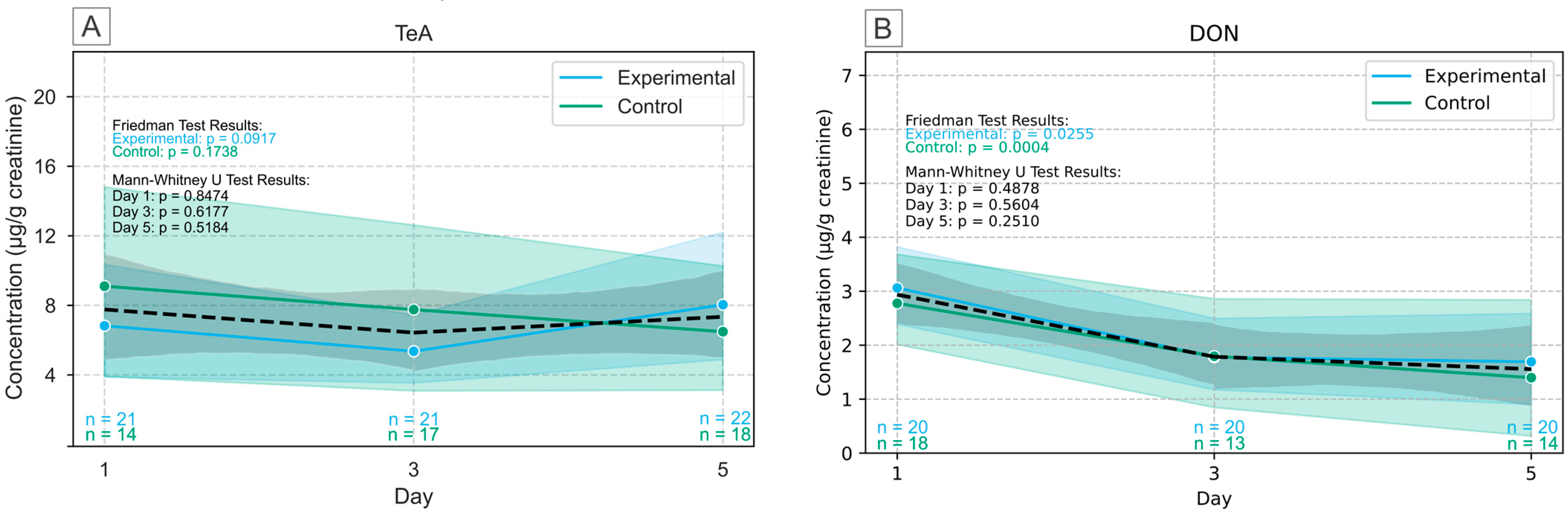 4.5. Human Biomonitoring of Multiple Mycotoxins in Urine