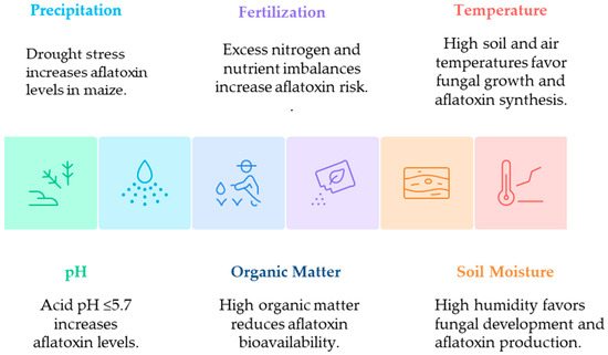 | Aflatoxins and Fumonisins | 30–34 | Drought and rainfall intervals | 18–25 | Veracruz and Chiapas | [73,,102,104] |
