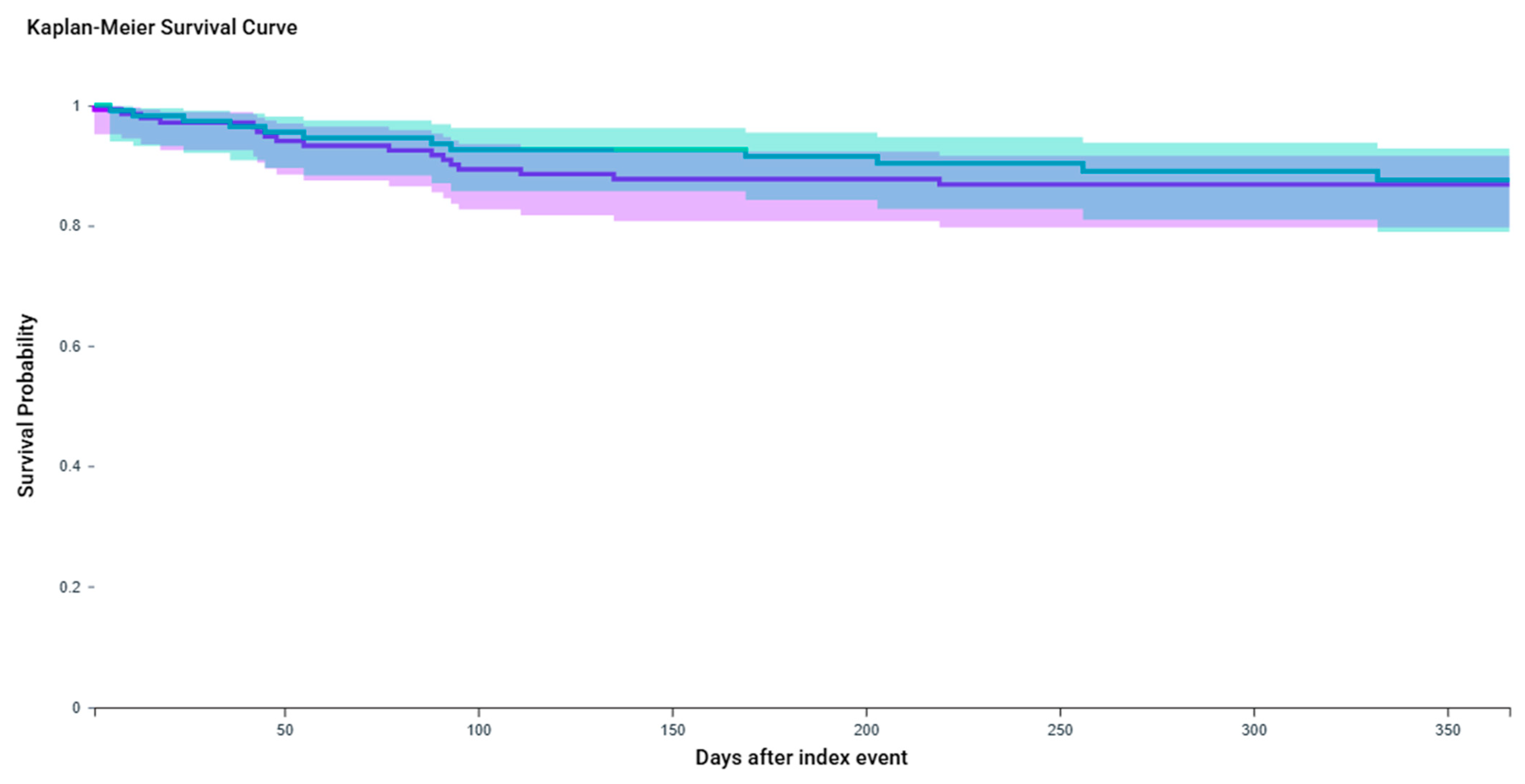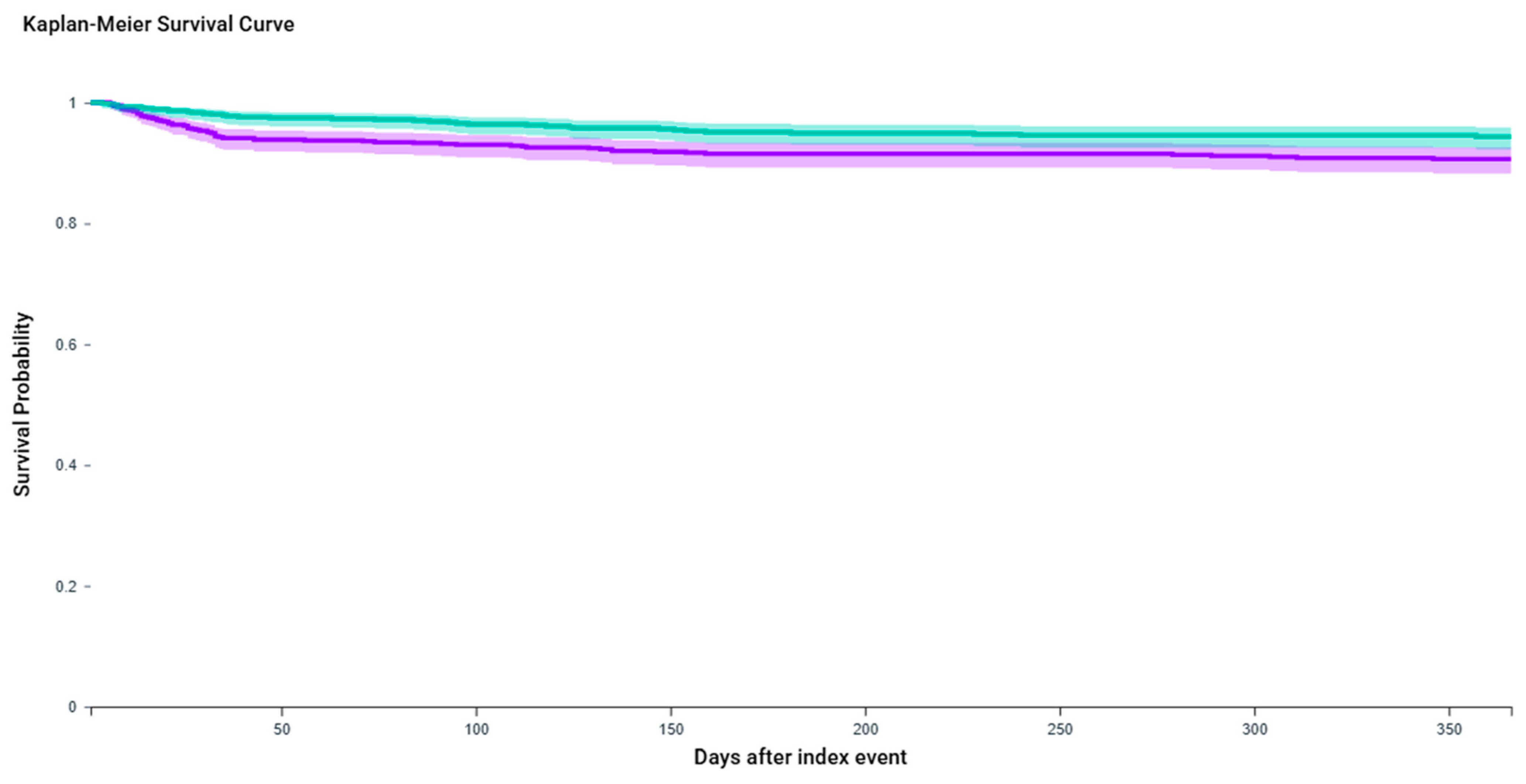 | Outcome | Event Rate (BTX-A Group) | Event Rate (BTX-A + GLP-1 Group) | Risk Difference (95% CI) | KM Log-Rank p | HR (95% CI) |
