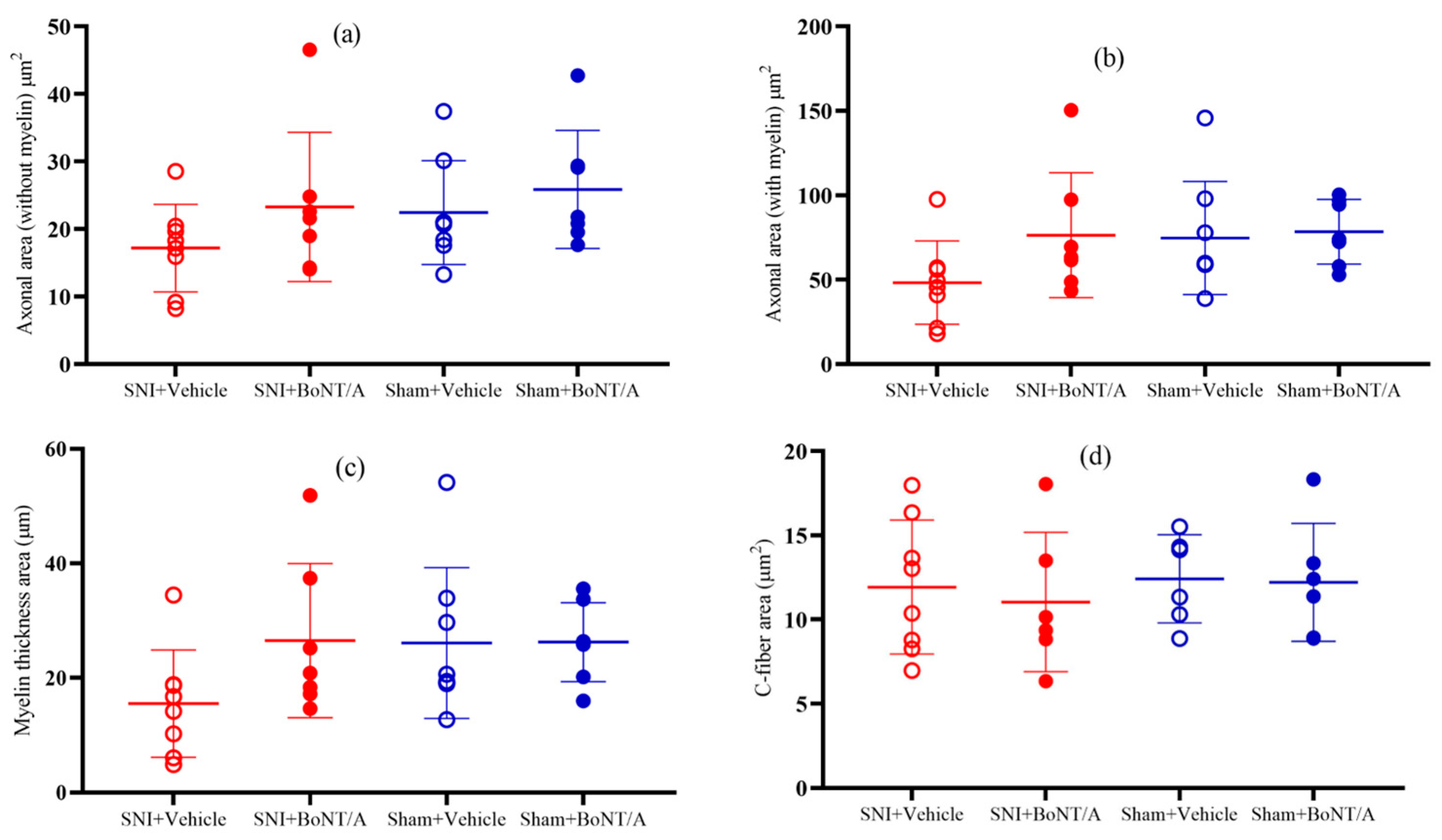 2.3.3. Axon Area, C-Fiber Diameter, and Myelin Thickness