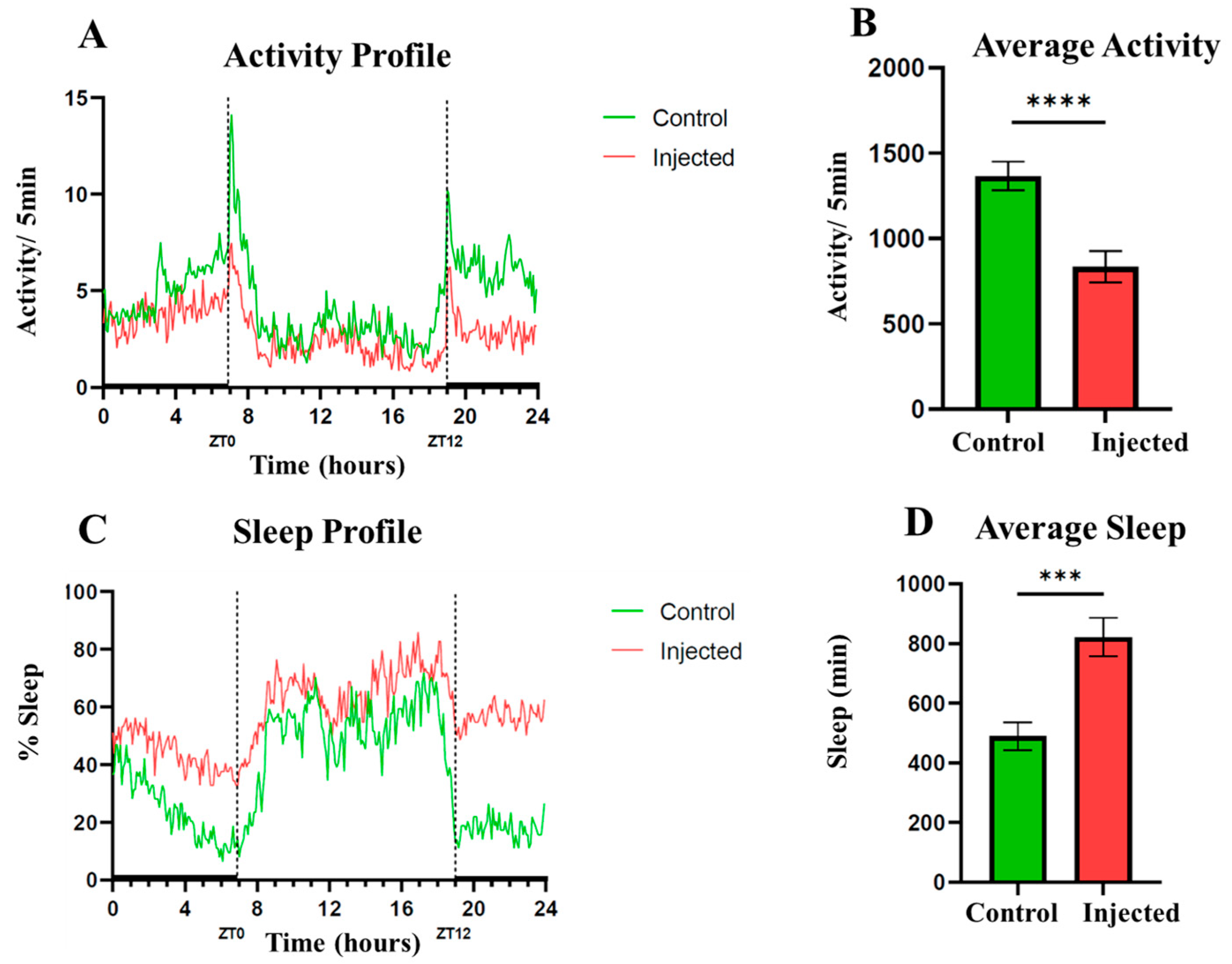 2.4. Effects of HjSV on Locomotor Activity and Sleep Pattern in D. melanogaster