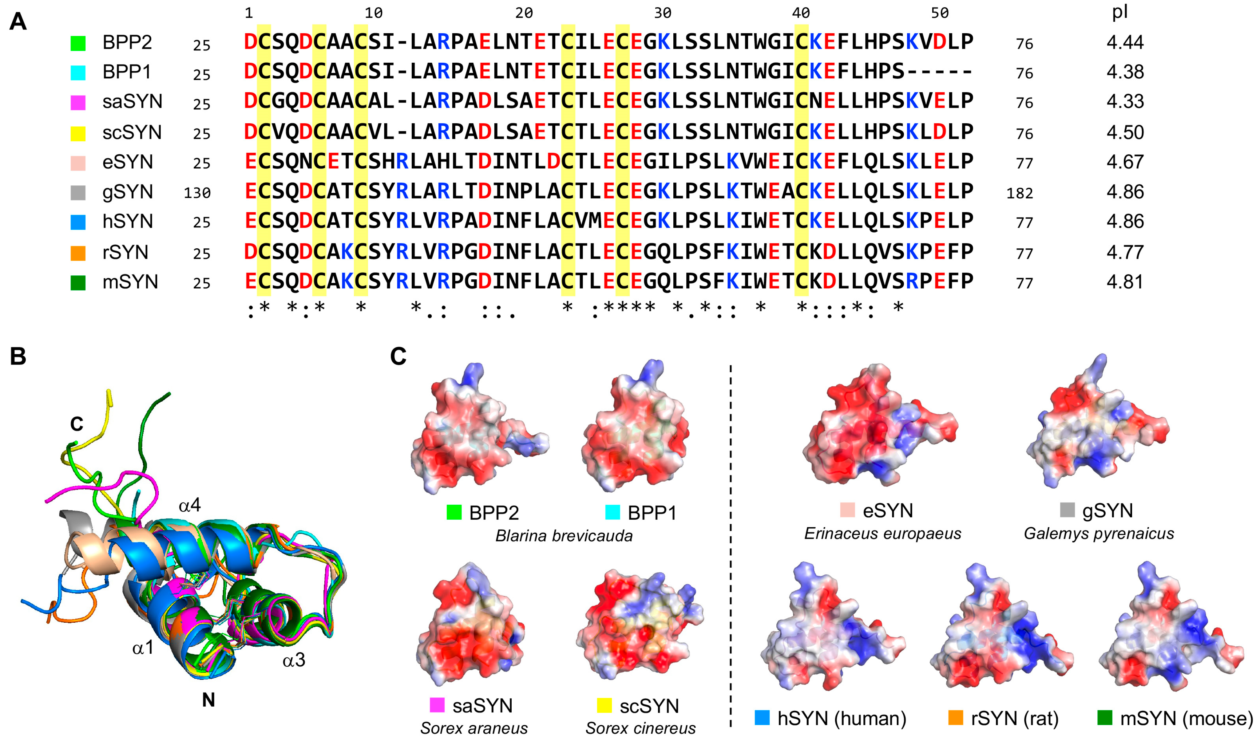 2.1. Sequence Alignment and Structure Comparison Among BPPs and SYNs