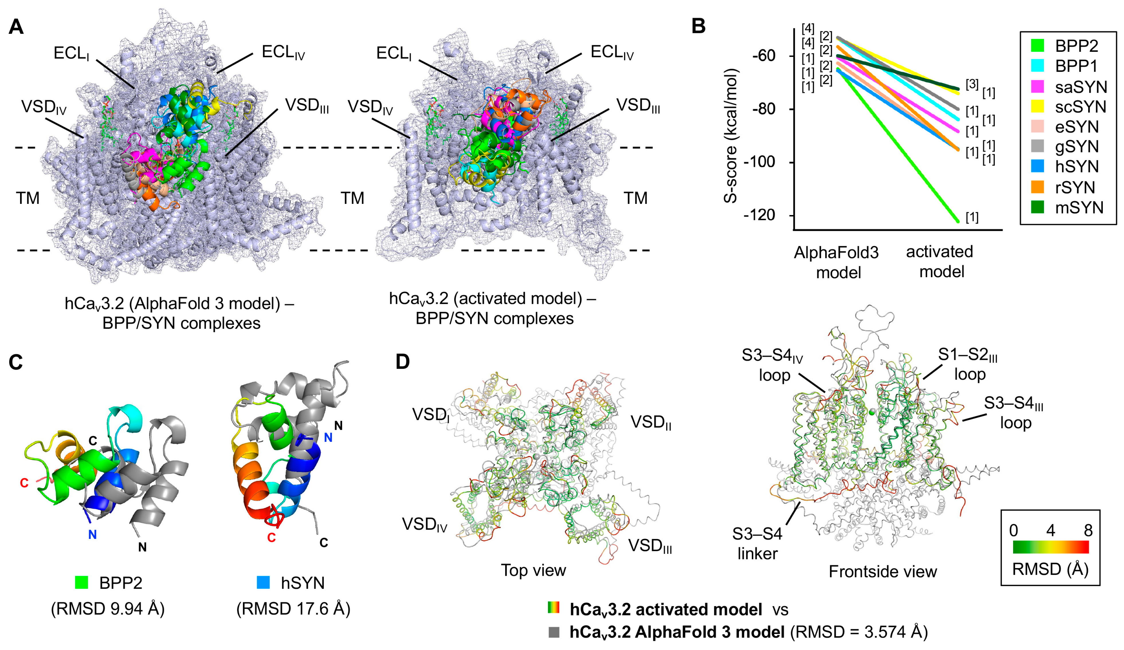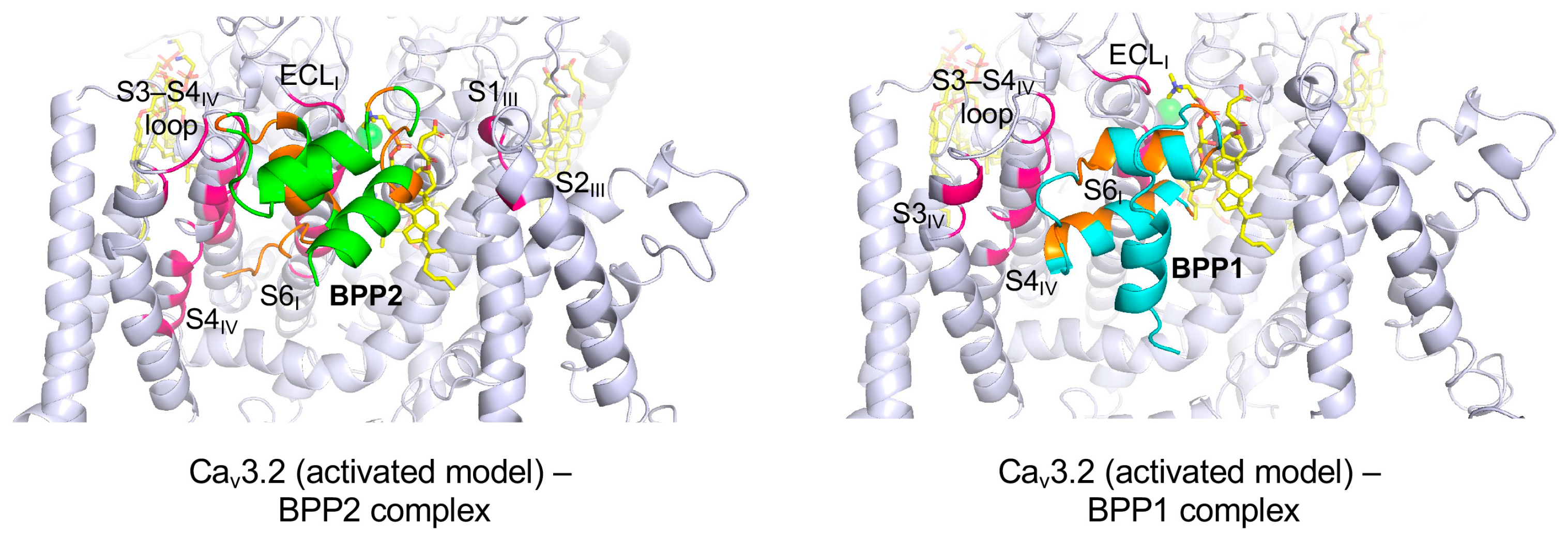 2.3. PPI-Dock Models of the hCav3.2–BPP and SYN Complexes