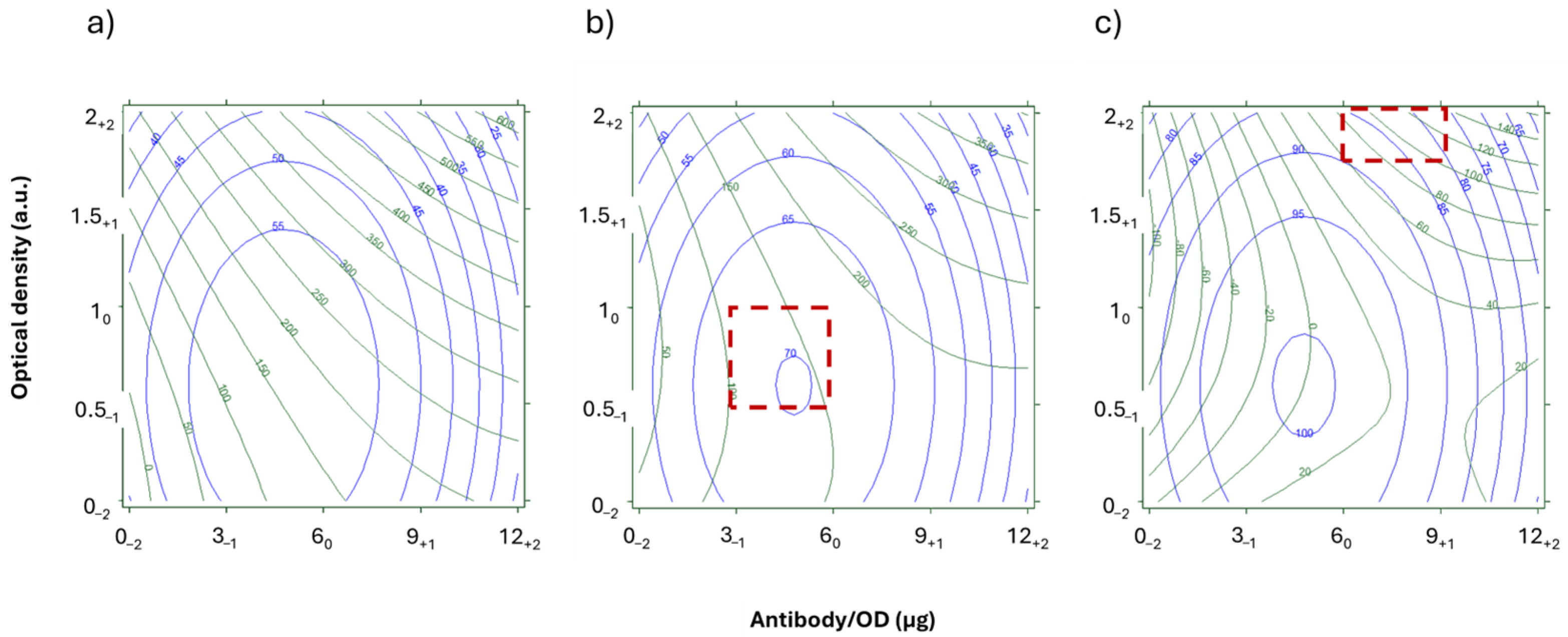 | DoE | Code | (µg/OD) | Code | (a.u.) | Code | (mg/mL) | Code | Ratio |