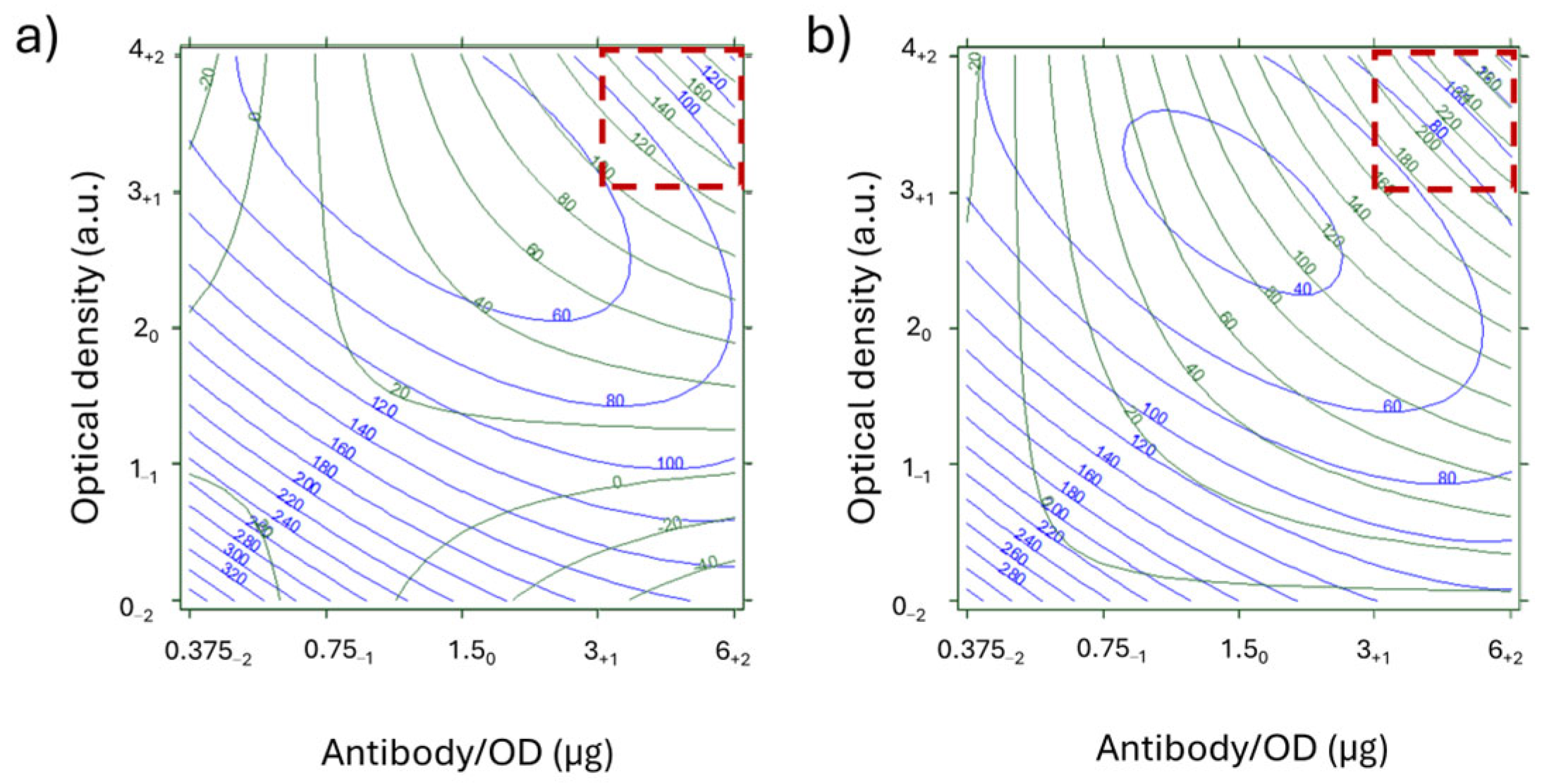 - Cavalera, S.; Gelli, A.; Di Nardo, F.; Serra, T.; Testa, V.; Bertinetti, S.; Ozella, L.; Forte, C.; Baggiani, C.; Anfossi, L. Improving the Sensitivity and the Cost-Effectiveness of a Competitive Visual Lateral Flow Immunoassay through Sequential Designs of Experiments. Microchem. J. 2025, 208, 112450. [Google Scholar] [CrossRef]