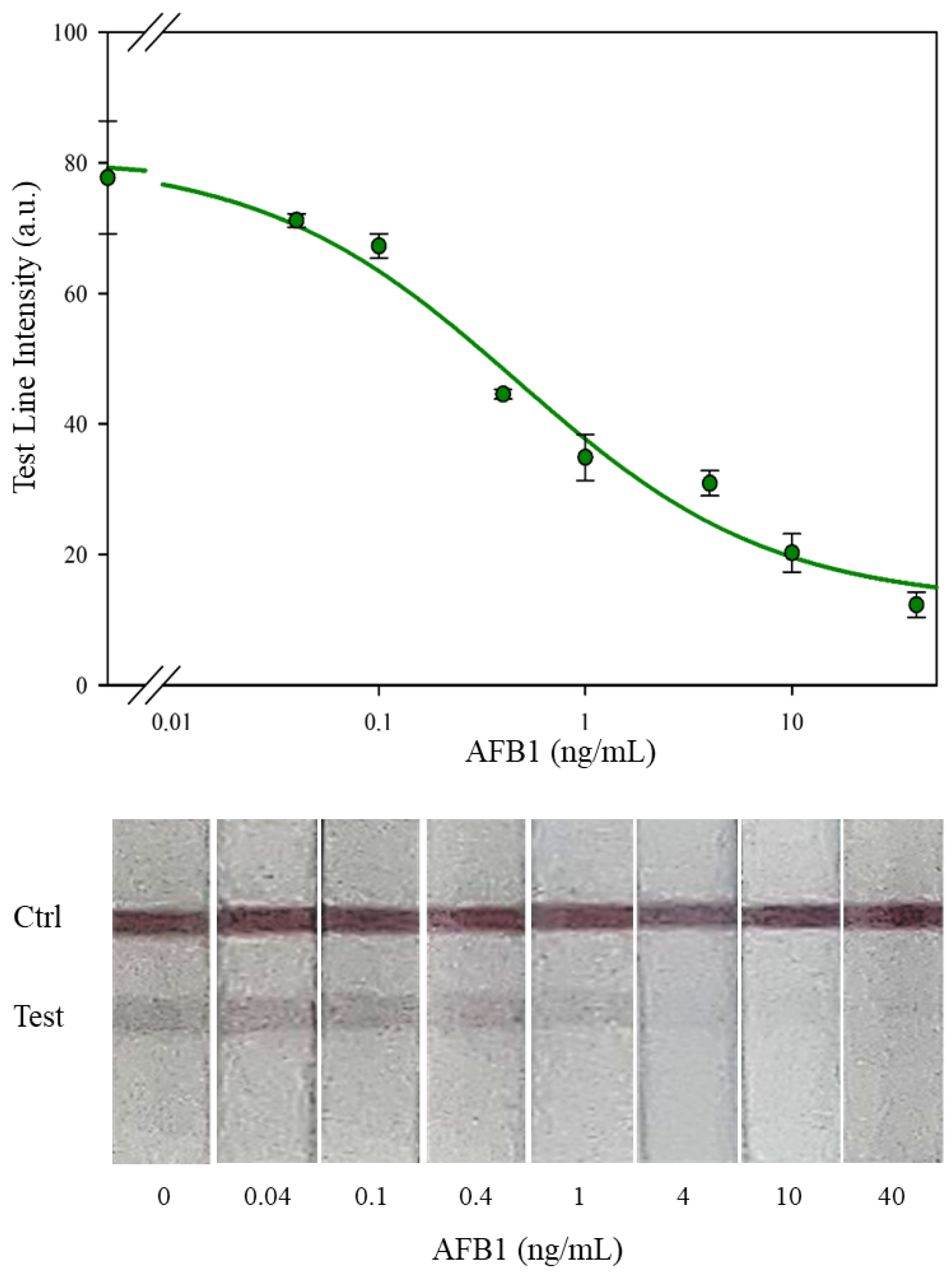 2.4. Analytical Evaluation of the Optimized LFIA-1 for AFB1 Detection