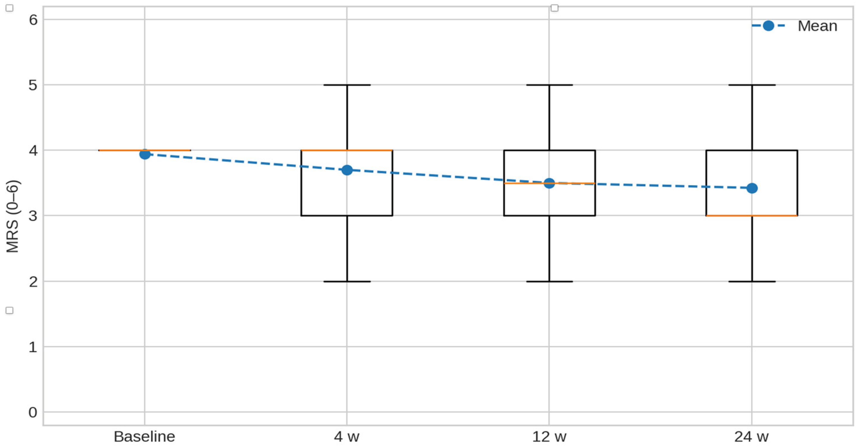 | Modified Rankin scale | 4.03 (0.69) | 3.87 (0.65) |