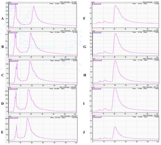 Naja atra venom, Deinagkistrodon acutus venom, and CY7-SE in Gel Permeation Chromatography Column ((A): Deinagkistrodon acutus venom; (B): Naja atra venom; (C): CY7-SE).