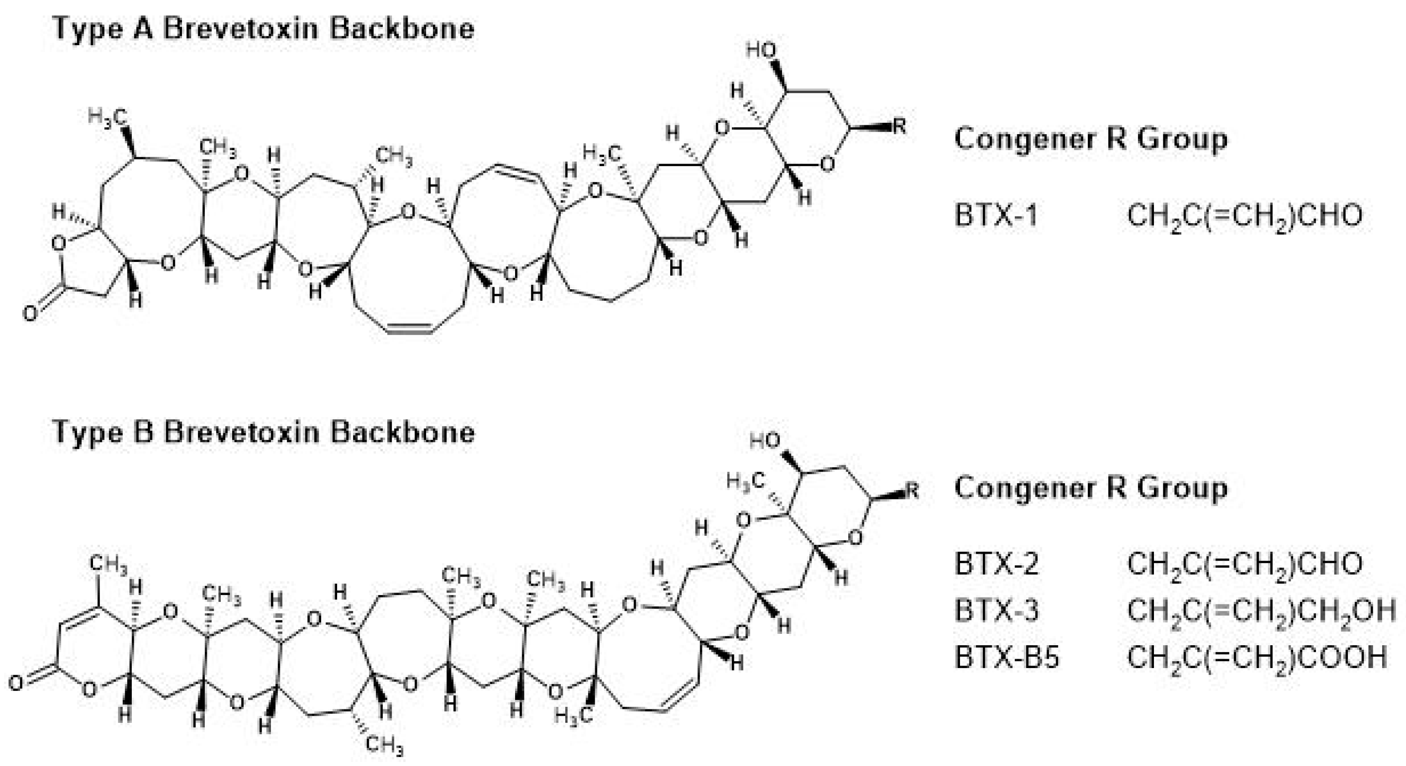 K. brevis naturally produces a group of potent cyclic polyether neurotoxins collectively referred to as brevetoxins (BTX) [