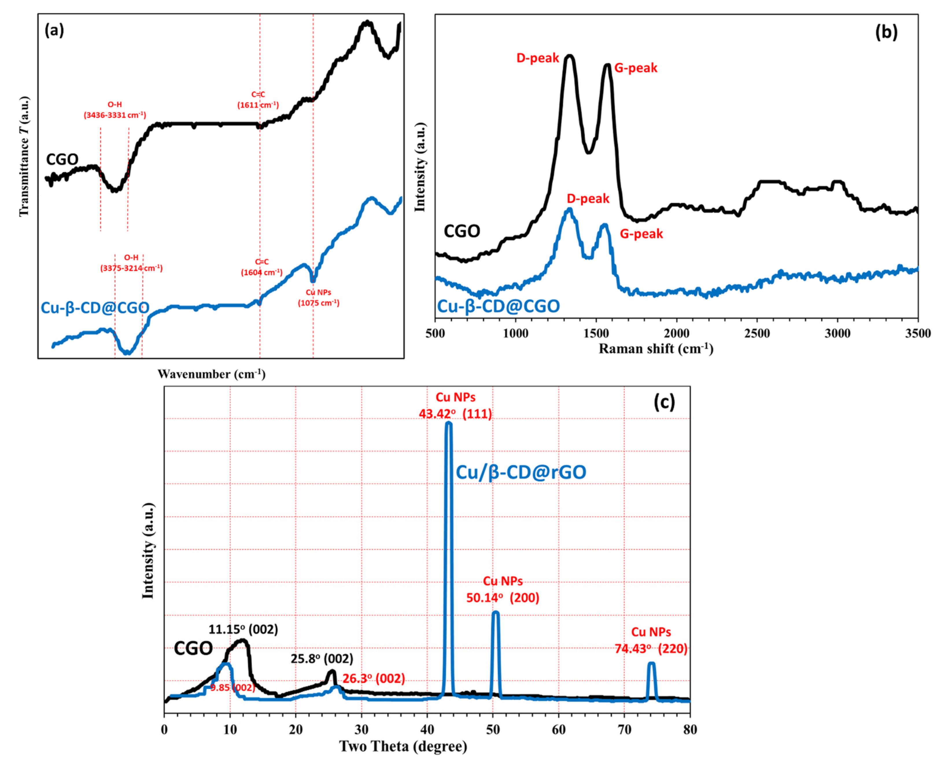 4.4. Cu/β-CD@CGO Nanocomposite Synthesis