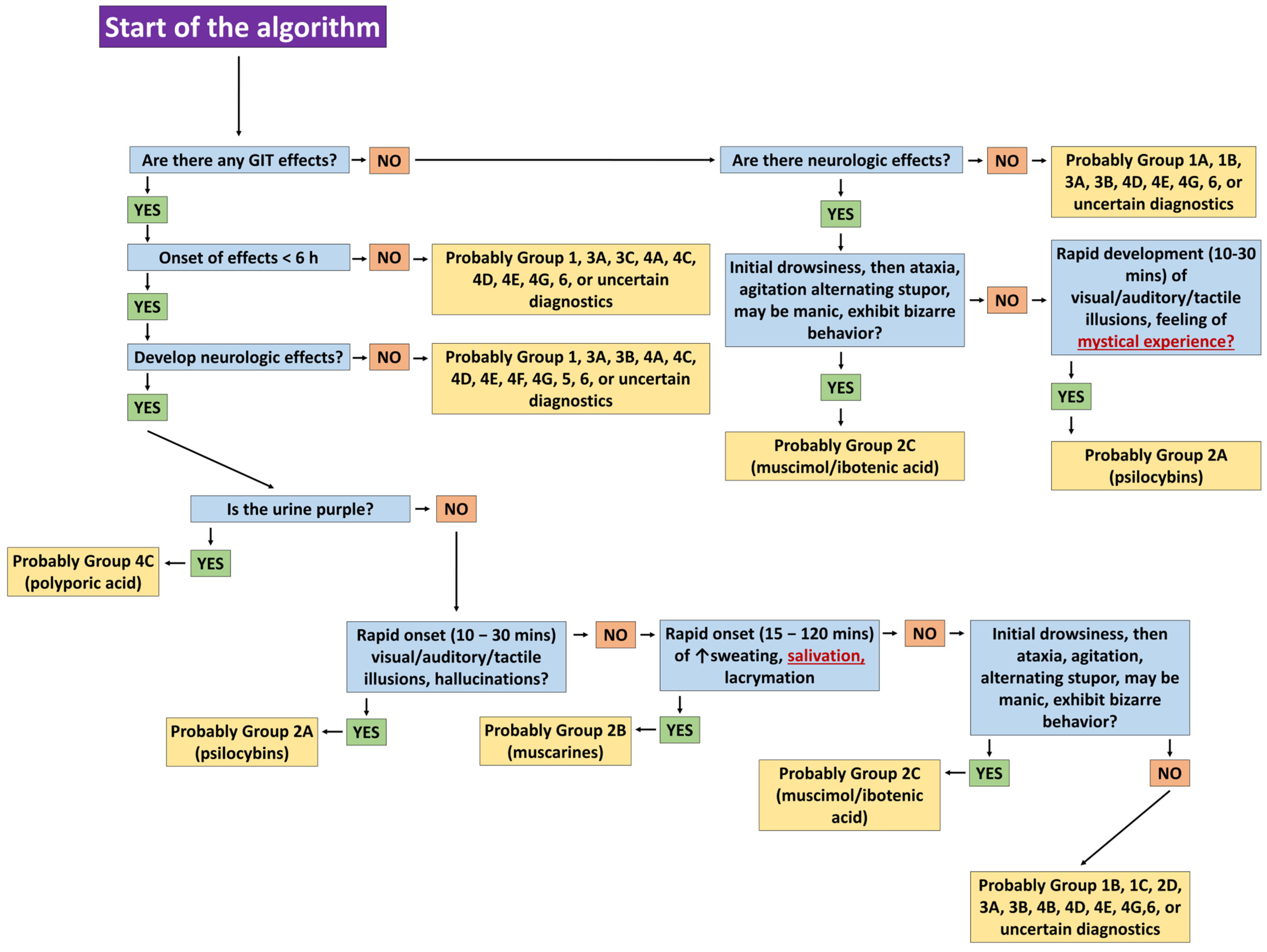 We particularly value the authors’ proposed diagnostic algorithm, which aids clinicians in rapidly achieving accurate diagnoses and selecting appropriate therapies. Although assessed retrospectively, applying the algorithm among colleagues confirmed its effectiveness. Figure 5 illustrates potential clinical pathways guiding a clinician toward diagnosing Group 2C mycotoxicosis—CNS toxicity from ibotenic acid/muscimol.