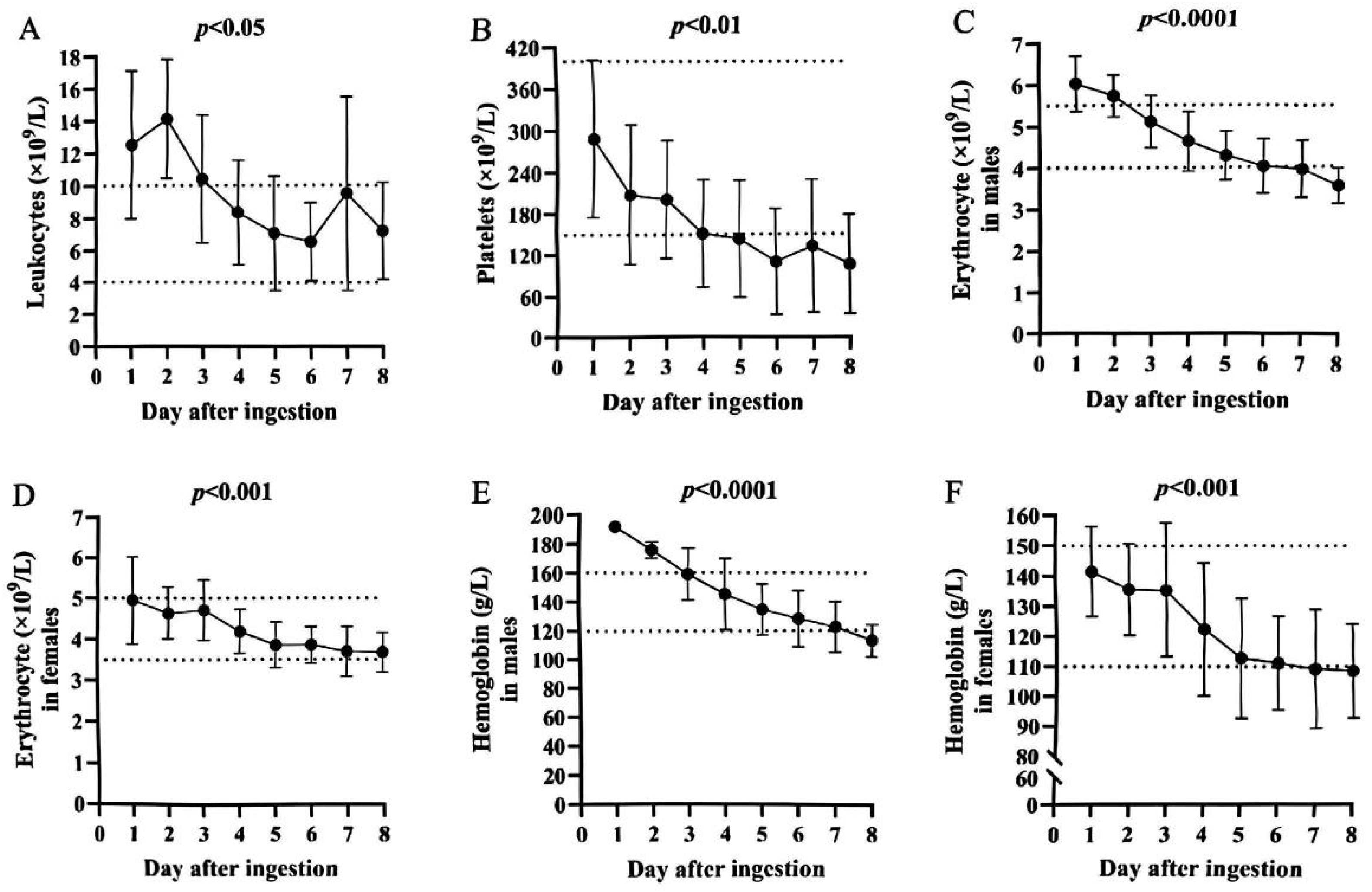 | Ingestion to hospital admission (h) | 45.9 ± 8.6 | 45.3 ± 8.9 | 48.7 ± 7.8 | 0.4400 |