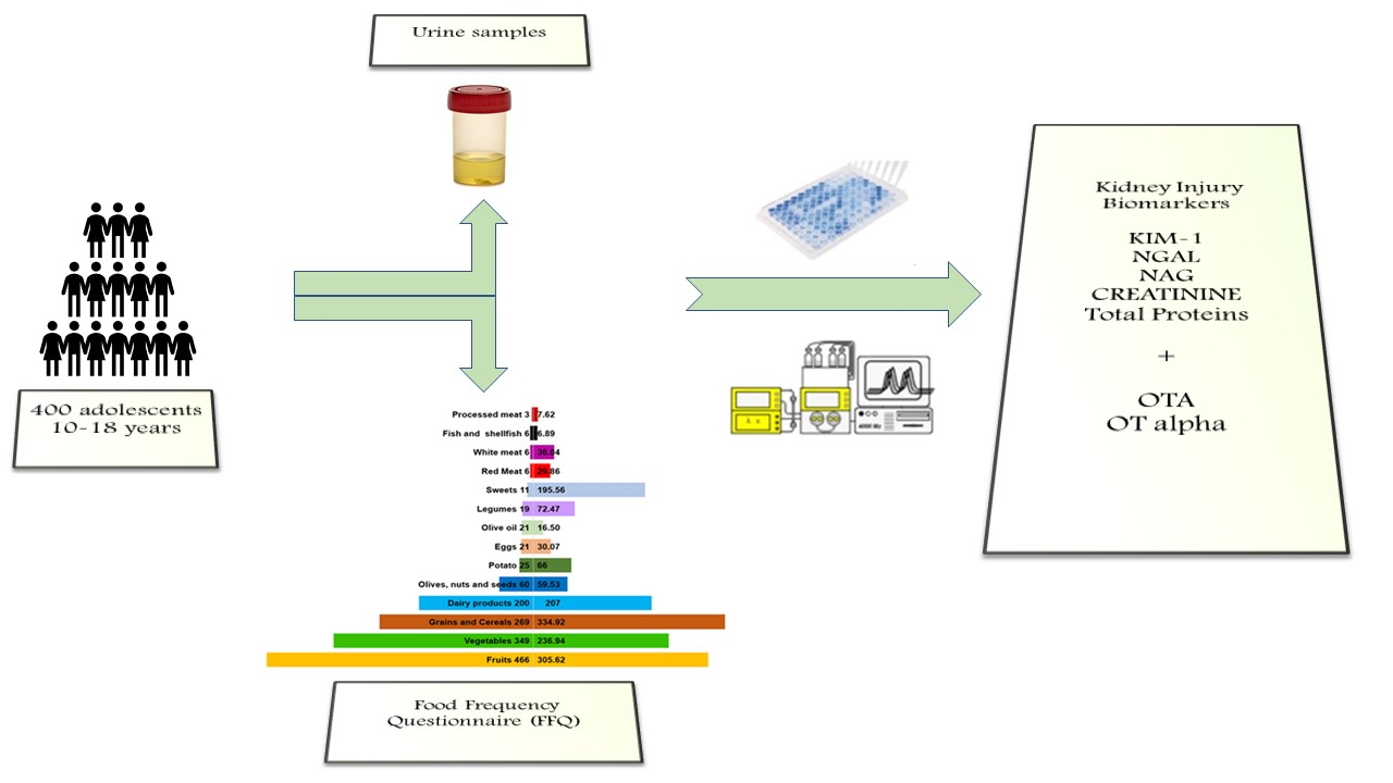 Daou, R.; Hoteit, M.; Chémali, J.; Tzenios, N.; Fares, N.; El Khoury, A. Assessing Kidney Injury Biomarkers and OTA Exposure in Urine of Lebanese Adolescents Amid Economic Crisis and Evolving Dietary Patterns. Toxins 2025, 17, 577. https://doi.org/10.3390/toxins17120577
