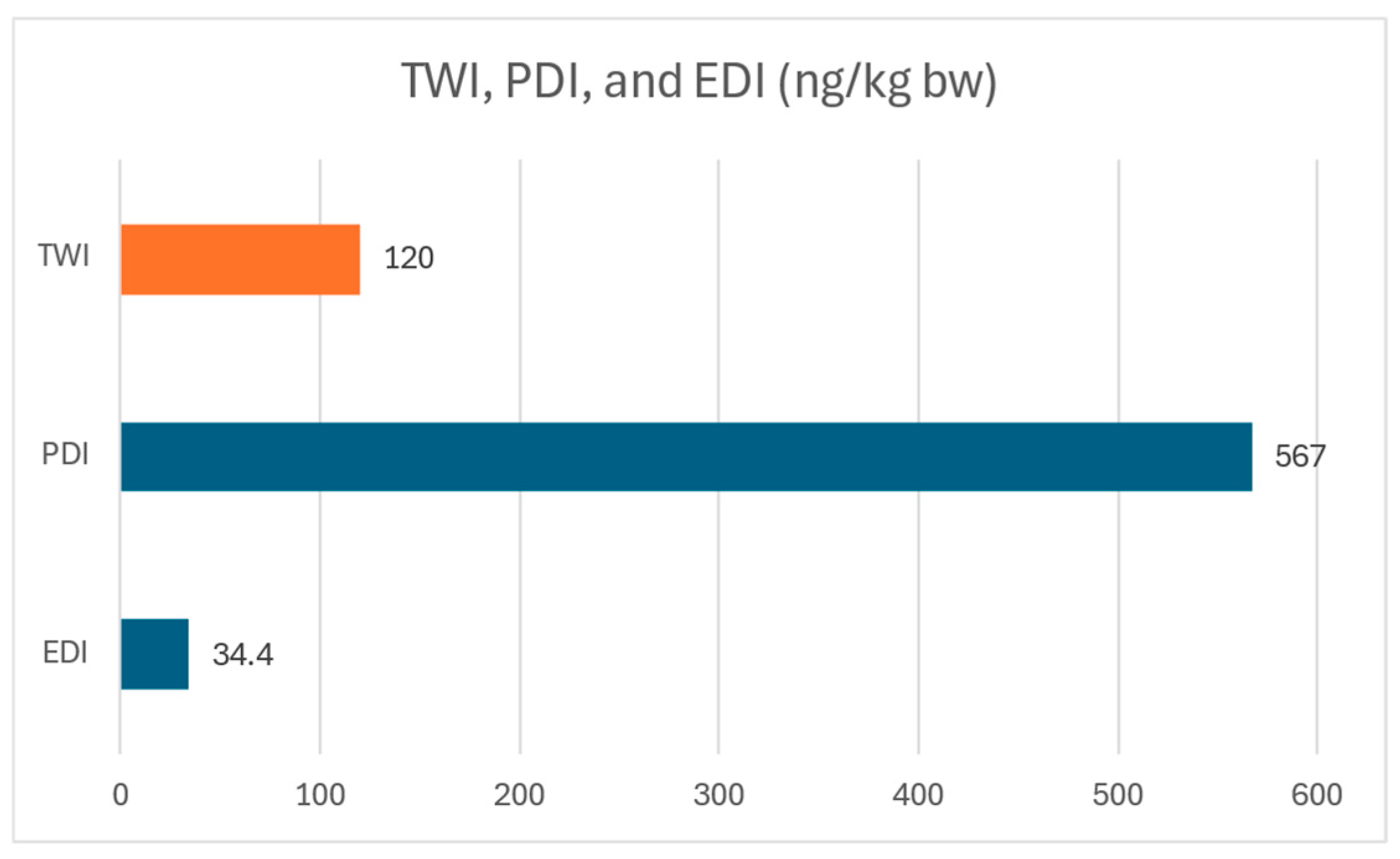 | EDI (ng/kg bw/day) | 4.92 | 34.44 | 2947 | 961 |