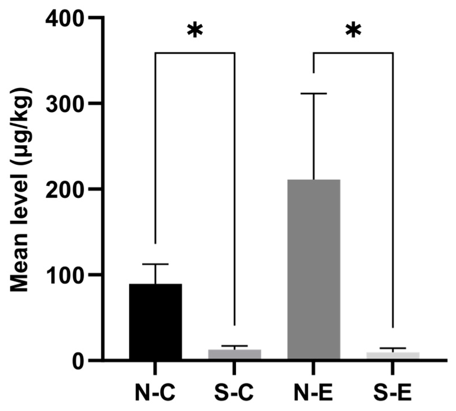 | DON | 232 ± 34.6 | 258 ± 45.9 | - | - |