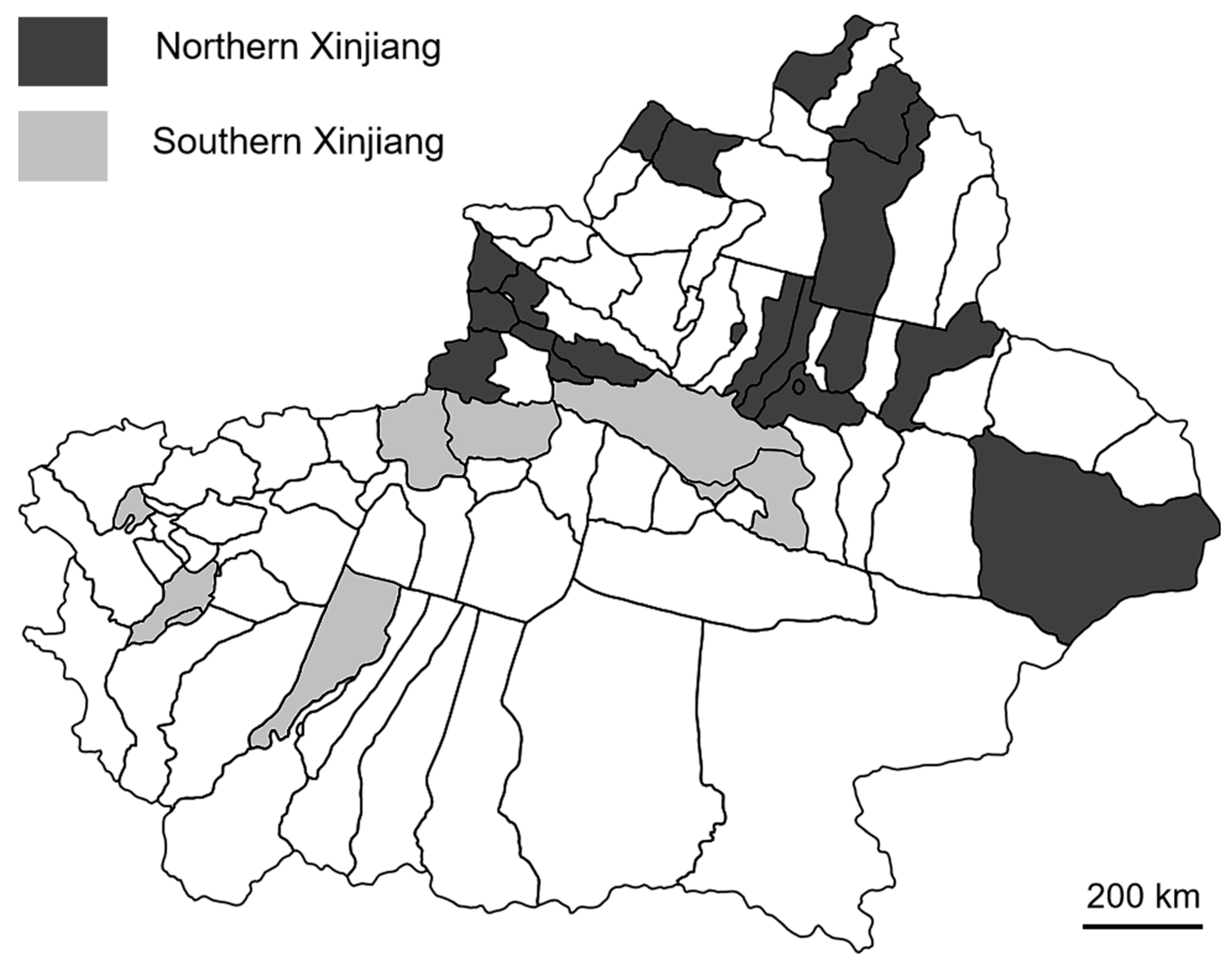 - Fang, H.; Ding, Y.D.; Fan, G.Q.; Gao, Y.H.; Huang, T.R. Research report on the development status of wheat industry in southern Xinjiang. Xinjiang Agric. Sci. 2024, 61, 5–80. (In Chinese) [Google Scholar]