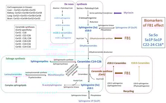 - Riley, R.T.; Merrill, A.H. Ceramide Synthase Inhibition by Fumonisins: A Perfect Storm of Perturbed Sphingolipid Metabolism, Signaling, and Disease. J. Lipid Res. 2019, 60, 1183–1189. [Google Scholar] [CrossRef]