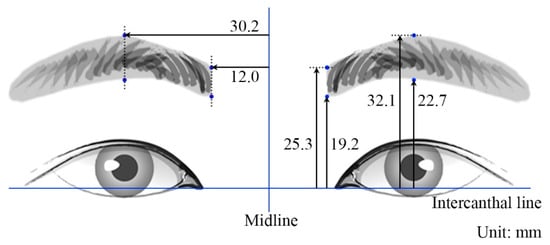 - Kim, M.J.; Lim, S.E.; Kim, Y.W.; Kim, J.H. Analysis of Korean Women’s Eyebrow Shape for Makeup Design. Asian J. Beauty Cosmetol. 2023, 21, 287–299. [Google Scholar] [CrossRef]
