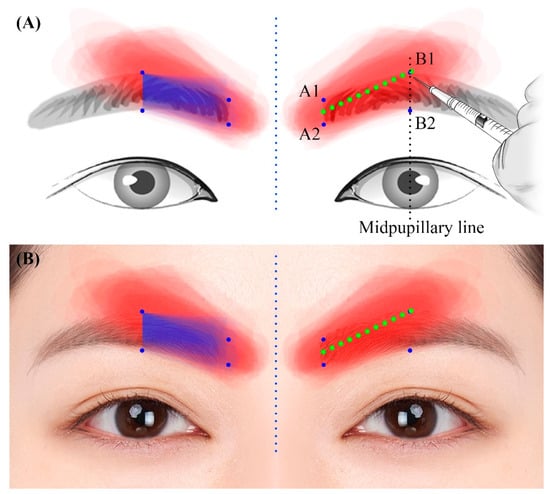- Yi, K.H.; Lee, J.H.; Hu, H.W.; Kim, H.J. Anatomical Proposal for Botulinum Neurotoxin Injection for Glabellar Frown Lines. Toxins 2022, 14, 268. [Google Scholar] [CrossRef] [PubMed]