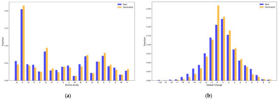 The preference for C and G in the generated sequences aligns with structural features such as disulfide bond formation (C) and increased flexibility (G). Meanwhile, the enrichment of E and A in real sequences suggests contributions to negative charge properties (E) and the formation of hydrophobic cores (A).