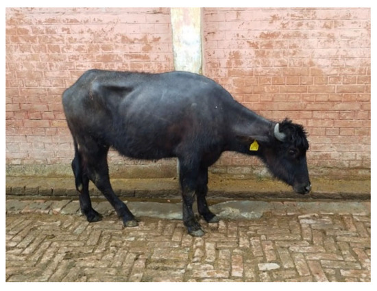 In the Animal Farm of ICAR-CIRB, Hisar (29.18° N and 75.70° E), India, some Murrah buffaloes (20 in no) were primarily found to be affected with tail gangrene in the age group of 1–3 years; hence, for the biochemical and clinical case study, the affected individuals were considered test subjects. To study the possible effect of the feed toxicosis outbreak, overall herd performances were assessed, where all the animals demonstrated feed refusal, sluggish movement, gastrointestinal dysfunction, reduced conception and milk production. The Animal Farm of ICAR-CIRB had a herd strength of 524 buffaloes comprising 136 buffaloes in milk, 31 dry buffaloes, 168 heifers, 69 bulls and 120 suckling calves in March 2023 when the outbreak was onset.