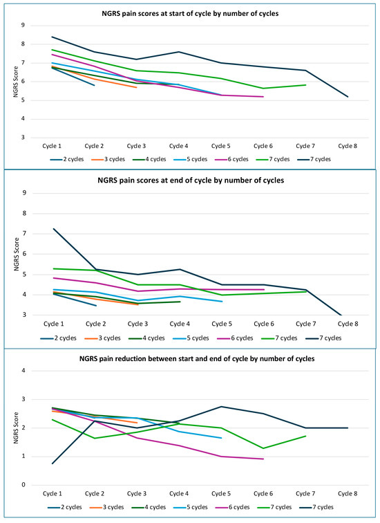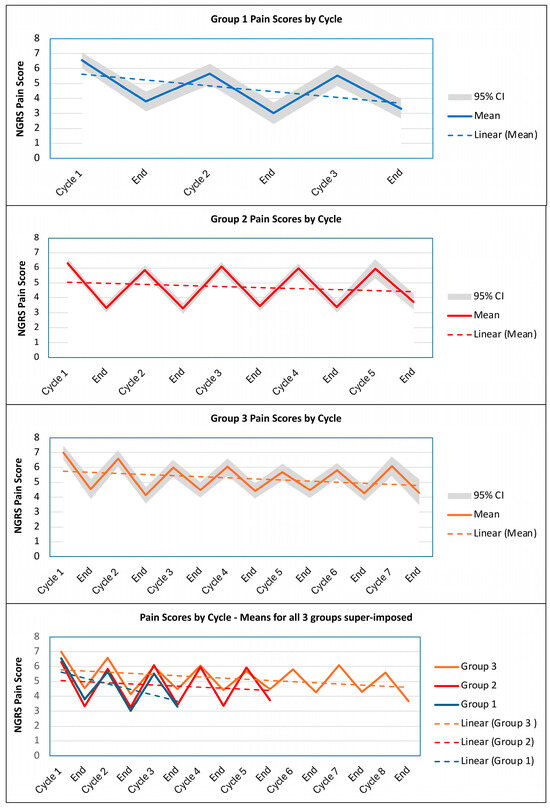 2.3. Serial Changes in Reported Pain Severity with Number of Cycles