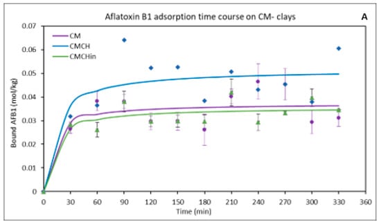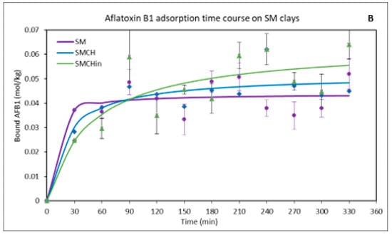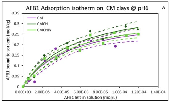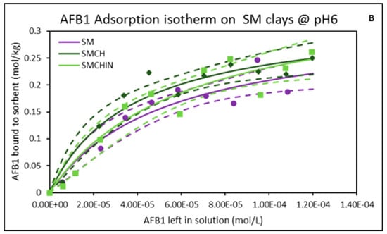 2.2. Isothermal Adsorption of AFB1 on the Clays at pH6 (Intestinal Condition)
