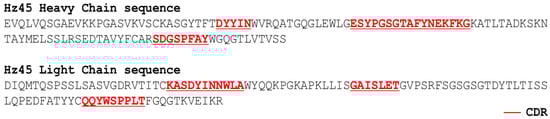 The light-chain and heavy-chain amino acid sequences of HZ45.