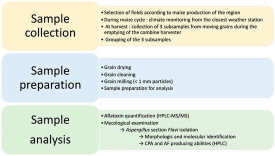 Workflow for samples from field collection to laboratory analysis. AF: aflatoxins; CPA: cyclopiazonic acid.