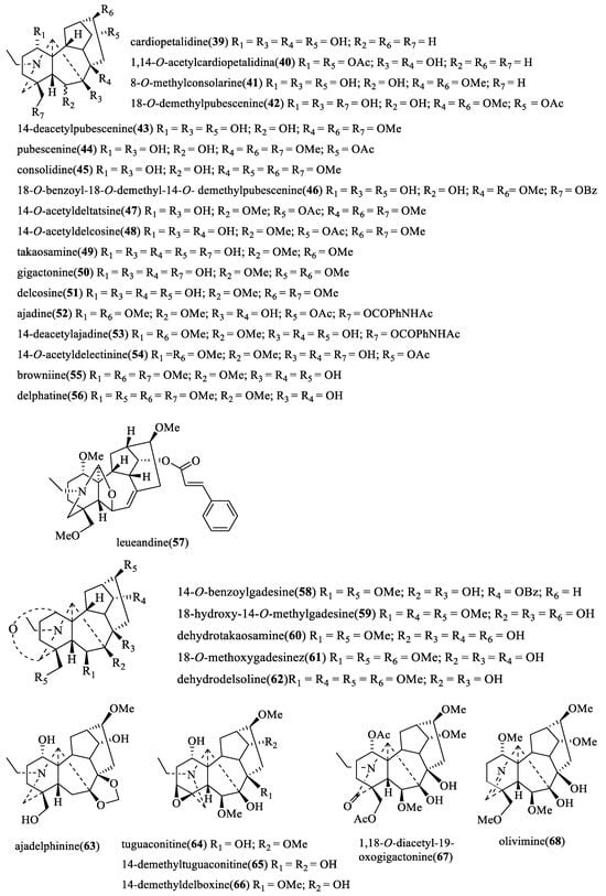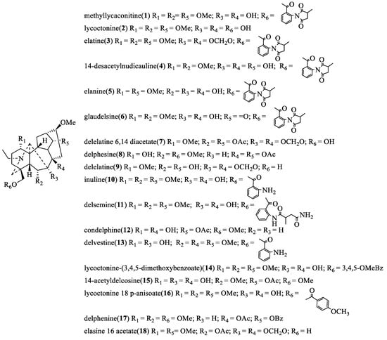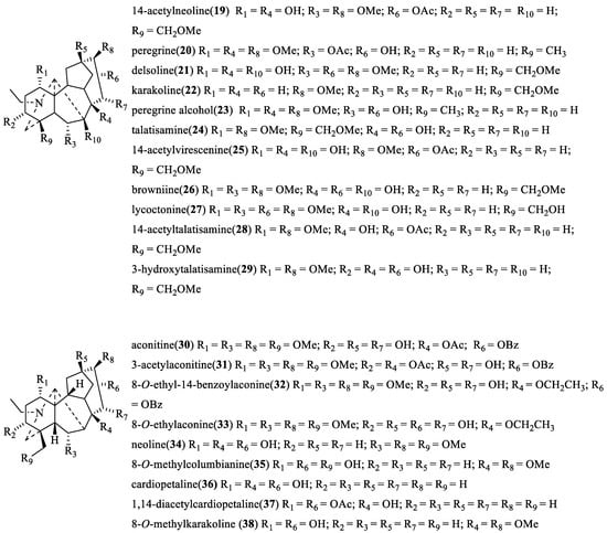 - Reina, M.; Coloma, A.G. Structural diversity and defensive properties of diterpenoid alkaloids. Phytochem. Rev. 2007, 6, 81–95. [Google Scholar] [CrossRef]