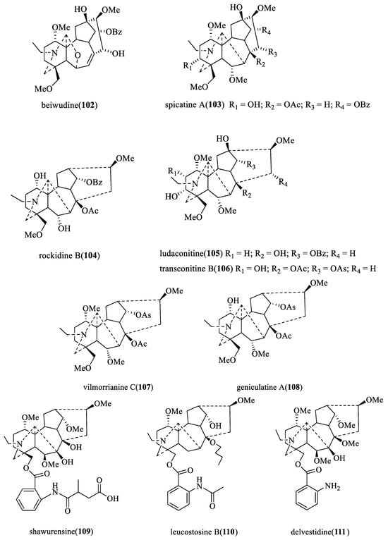 - Shen, Y.; Liang, W.J.; Shi, Y.N.; Kennelly, E.J.; Zhao, D.K. Structural diversity, bioactivities, and biosynthesis of natural diterpenoid alkaloids. Nat. Prod. Rep. 2020, 37, 763–796. [Google Scholar] [CrossRef]