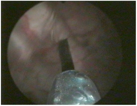 The introduction of biodegradable bulking agents has provided a minimally invasive alternative to both continuous antibiotic prophylaxis and open surgical procedures for the management of VUR in pediatric patients. This approach involves the injection of a biocompatible substance beneath the mucosal layer of the intramural ureter during cystoscopy. This injection results in reinforcement of the distal ureter, lengthening the submucosal tunnel, narrowing the ureteral lumen, and thus reducing retrograde urine flow but still preserving normal antegrade drainage []. Over the past three decades, various bulking agents have been used for endoscopic correction of VUR. Currently, the most widely adopted are dextranomer/hyaluronic acid (Deflux®) (Scandinavian Regulatory Services AB, Svärdvägen 3b, 182 33 Danderyd, Sweden)and polyacrylate-polyalkyl copolymer (PPC) hydrogel (Vantris®) (Via Sommariva, 35–10022 Carmagnola, Torino, Italy) [,,]. Several endoscopic injection (EI) techniques have been developed over time, including the subureteral transurethral injection method, also known as the STING (Sub-ureteral Teflon Injection) procedure [], and the hydrodistension implantation technique (HIT) []. In our case study, only Deflux(R) was used.