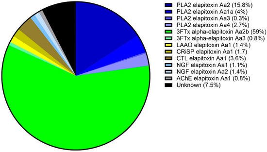 - Tasoulis, T.; Pukala, T.L.; Isbister, G.K. Investigating Toxin Diversity and Abundance in Snake Venom Proteomes. Front. Pharmacol. 2022, 12, 768015. [Google Scholar] [CrossRef]