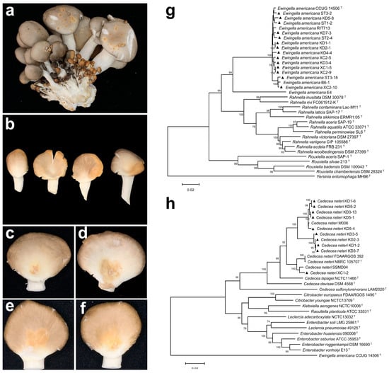- Yan, J.J.; Liu, Y.Y.; Wang, R.Q.; Mukhtar, I.; Liu, F.; Lin, Z.Y.; Jiang, Y.J.; Xie, B.G. First Report of Cedecea neteri Causing Yellow Sticky Disease in Flammulina velutipes in China. Plant Dis. 2019, 103, 1014–1015. [Google Scholar] [CrossRef]